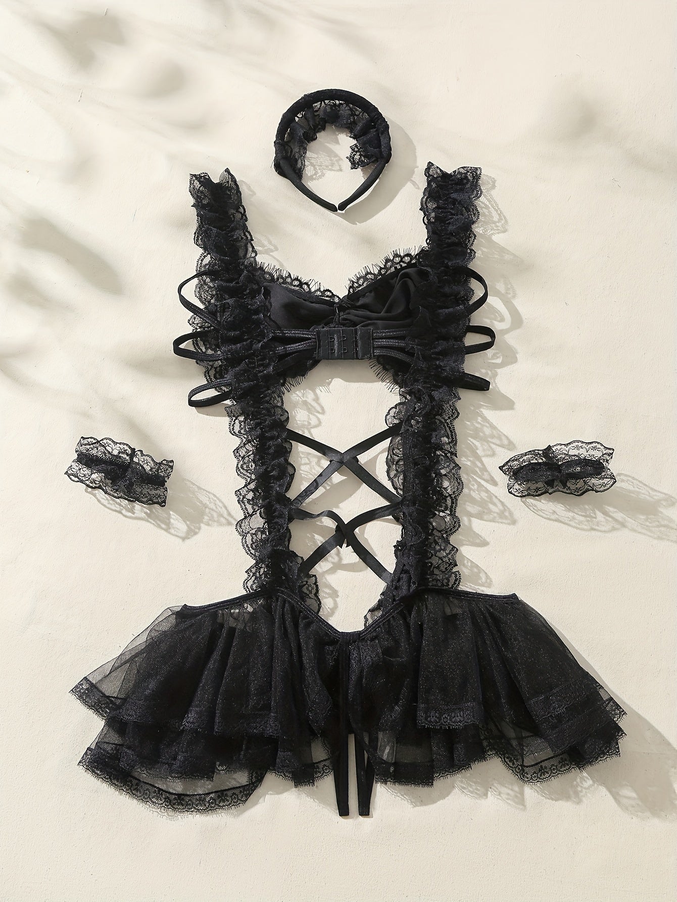 Naughty Maid Cosplay Costume Set with Cami Dress Cuffs and Headwear
