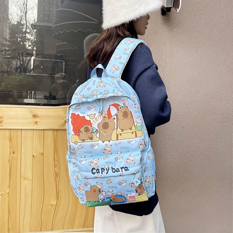 Cute Capybara Pattern Backpack Large Capacity Nylon School Bag with Adjustable Straps