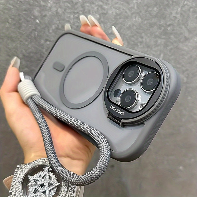 Shockproof Transparent Phone Case with Magnetic Folding Glass Frame and Lanyard for iPhone 16 15 14 Pro Max