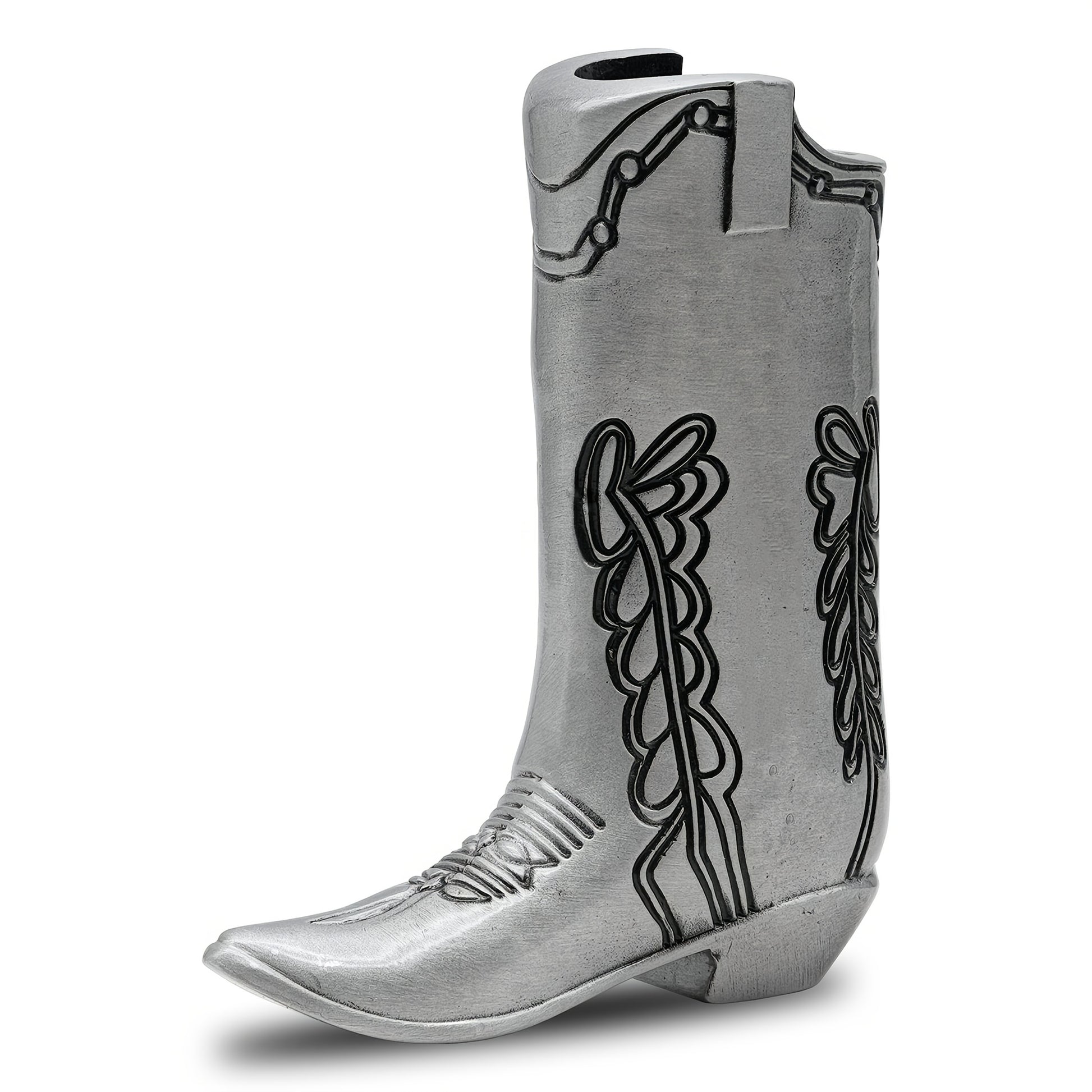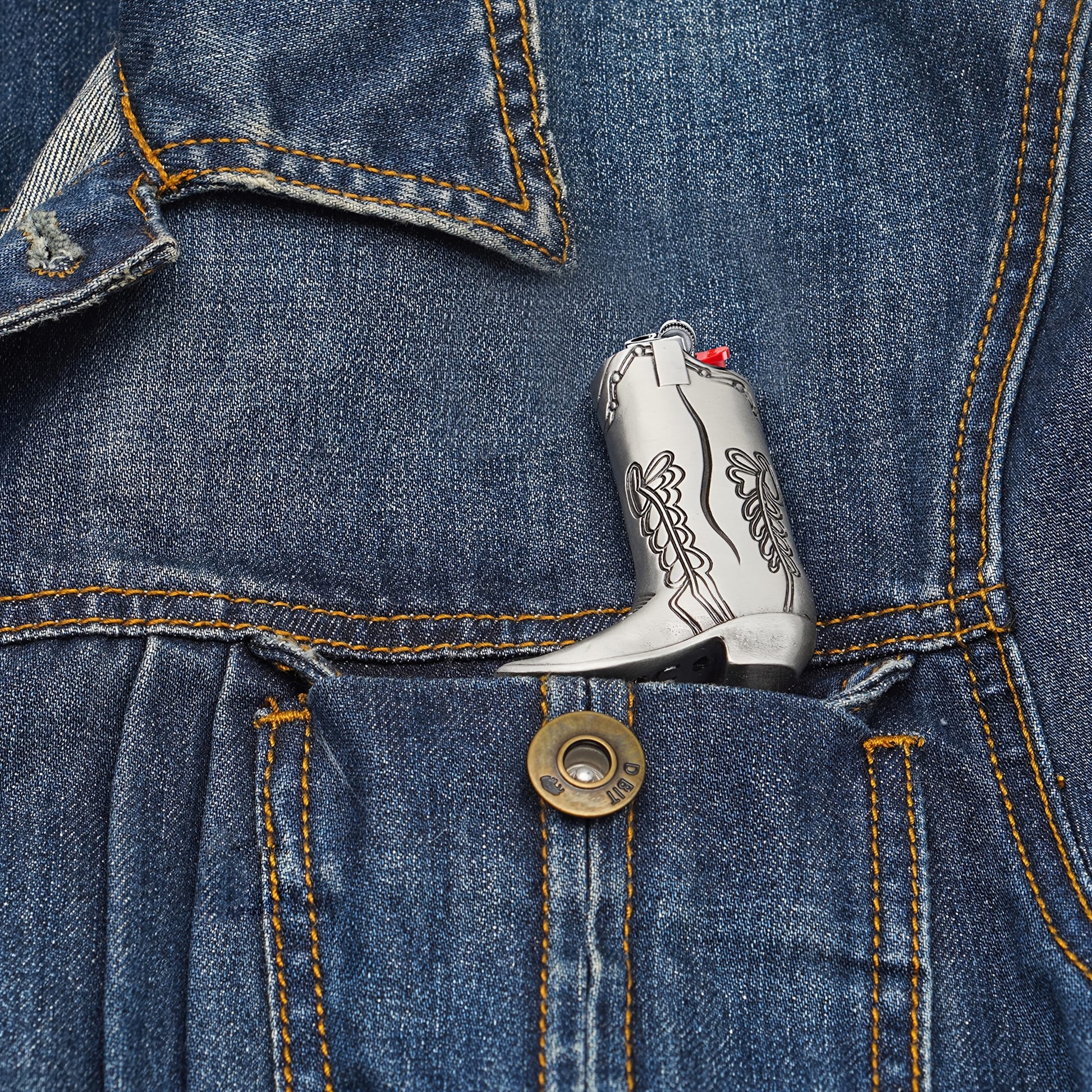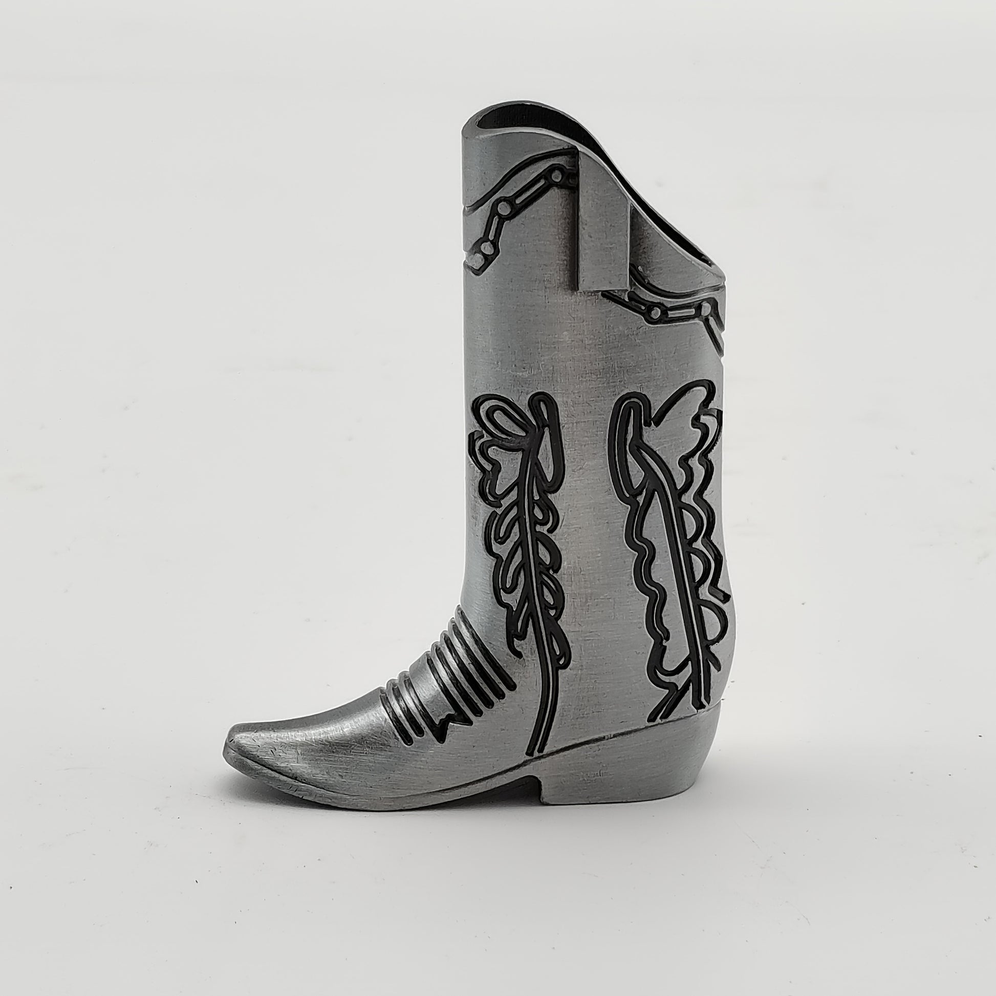 Silvery Cowboy Boot Lighter Case for Mini Bic J5, Party and Daily Use