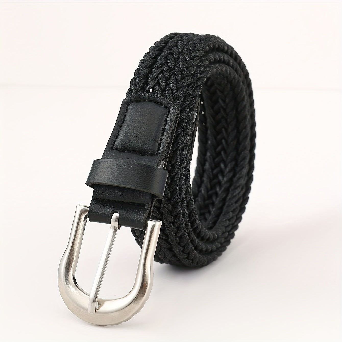 Black Braided Belt for Men and Women with Pin Buckle for Jeans and Casual Wear