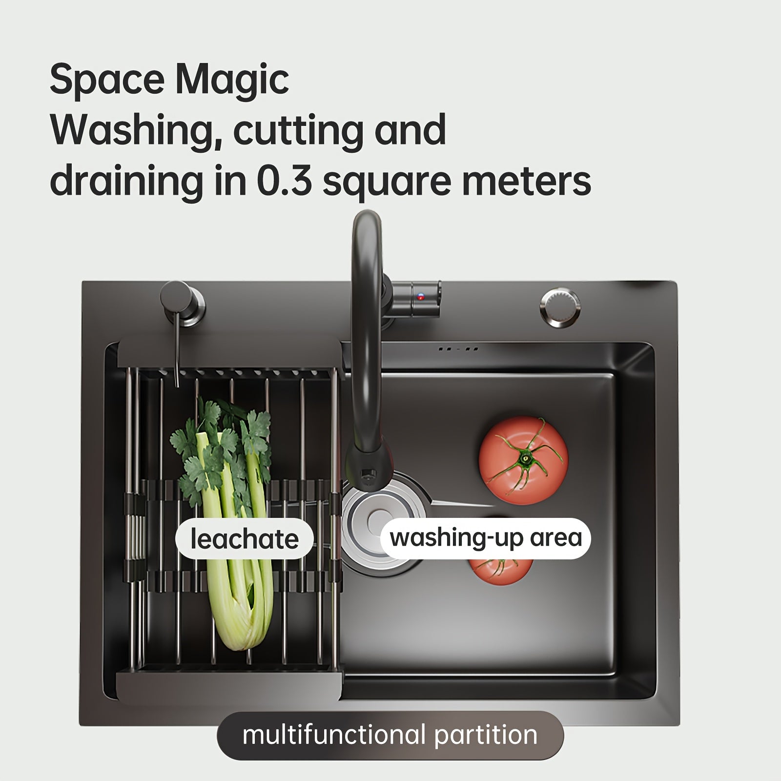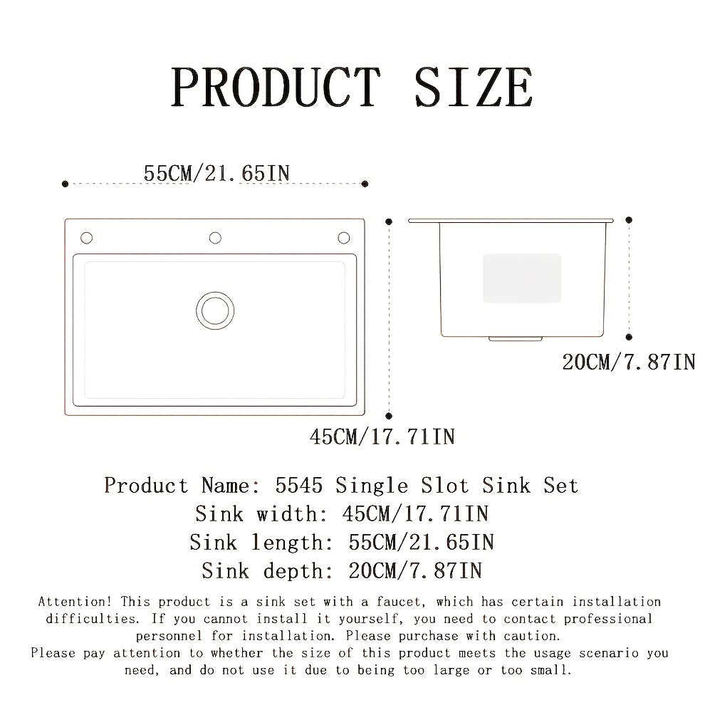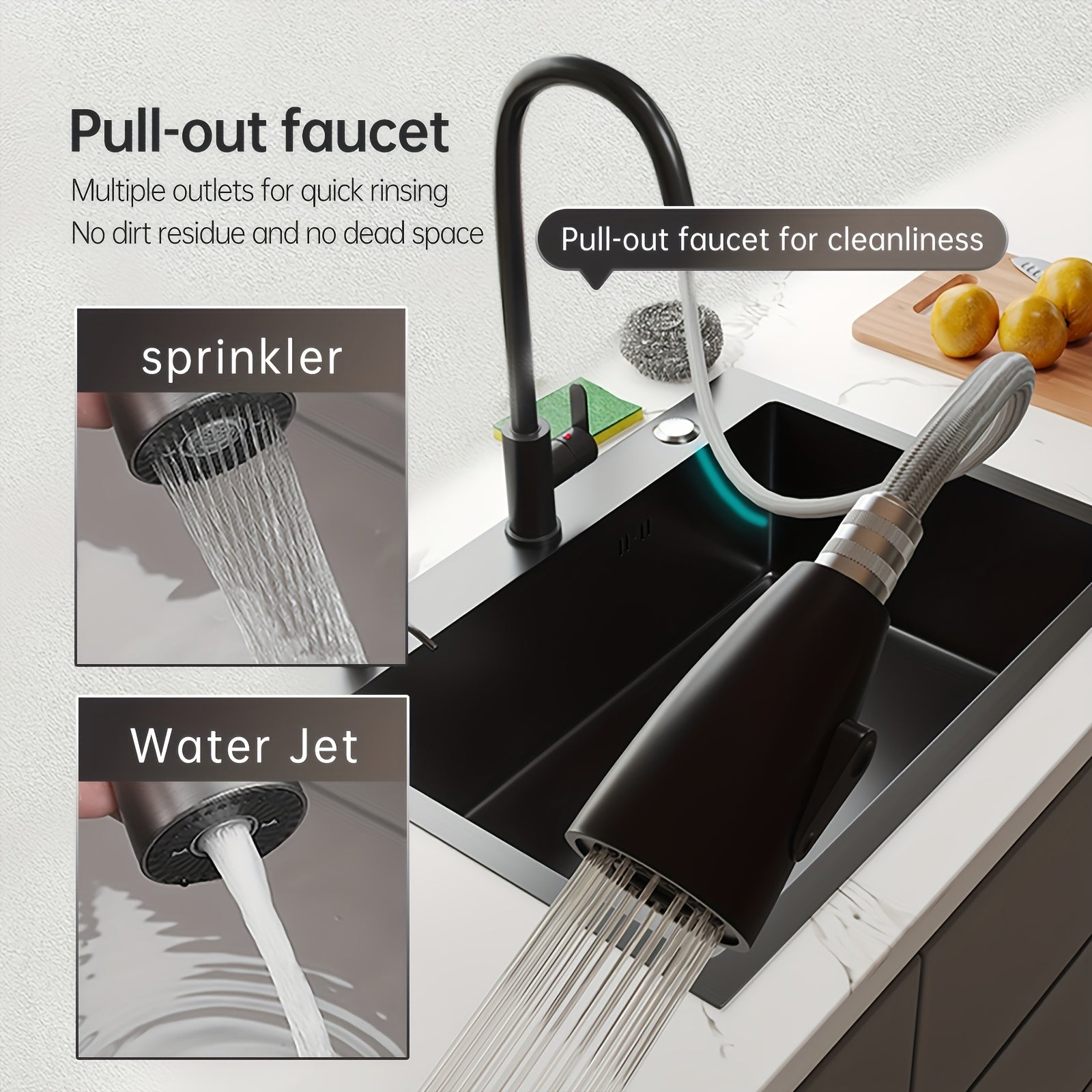 Black Stainless Steel Kitchen Sink Single Bowl Undercounter with Center Drain and Pull-Out Faucet