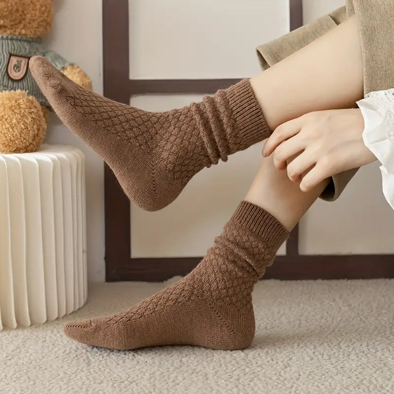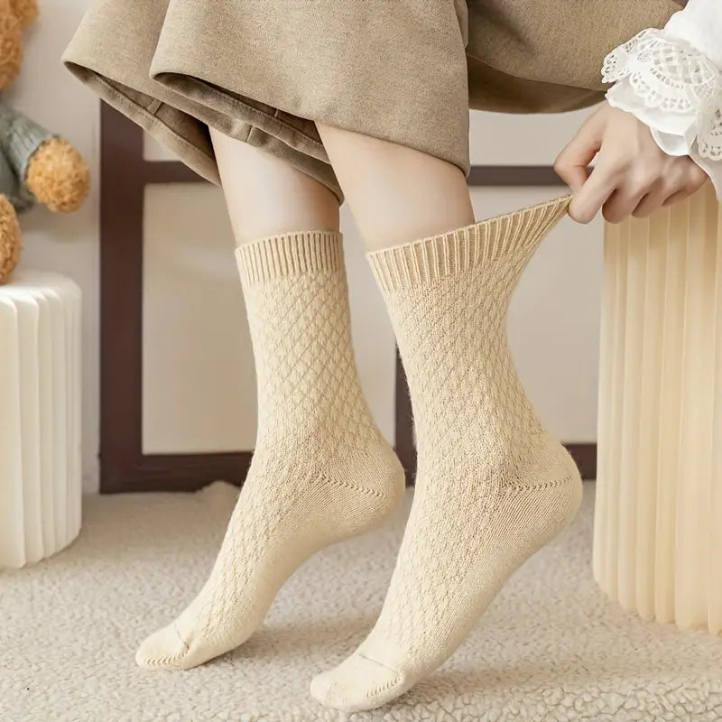 Women Mid Tube Socks 6 Pairs Rhombus Pattern Fuzzy Polyester Spandex