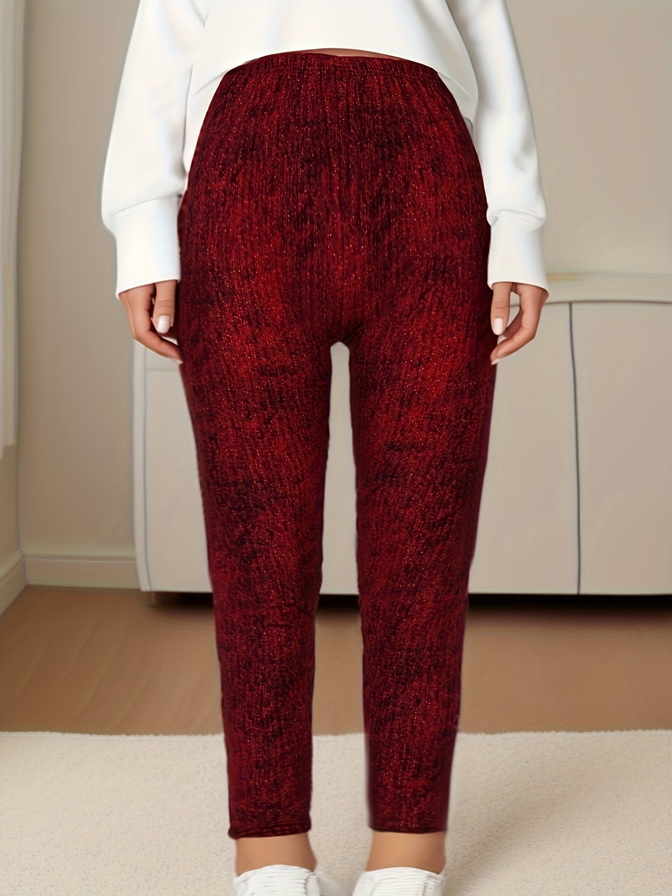 Women's High Elastic Hemp Dot Skinny Leggings for Workout and Casual Wear