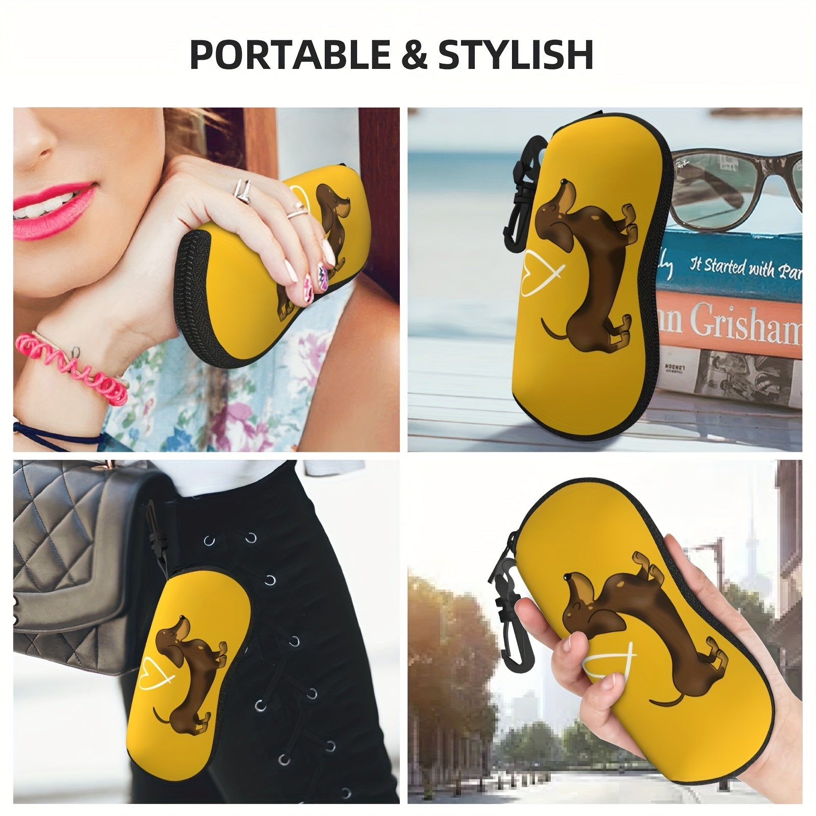 Neoprene Glasses Case with Dachshund Print Portable Eyewear Holder for Travel and Sports