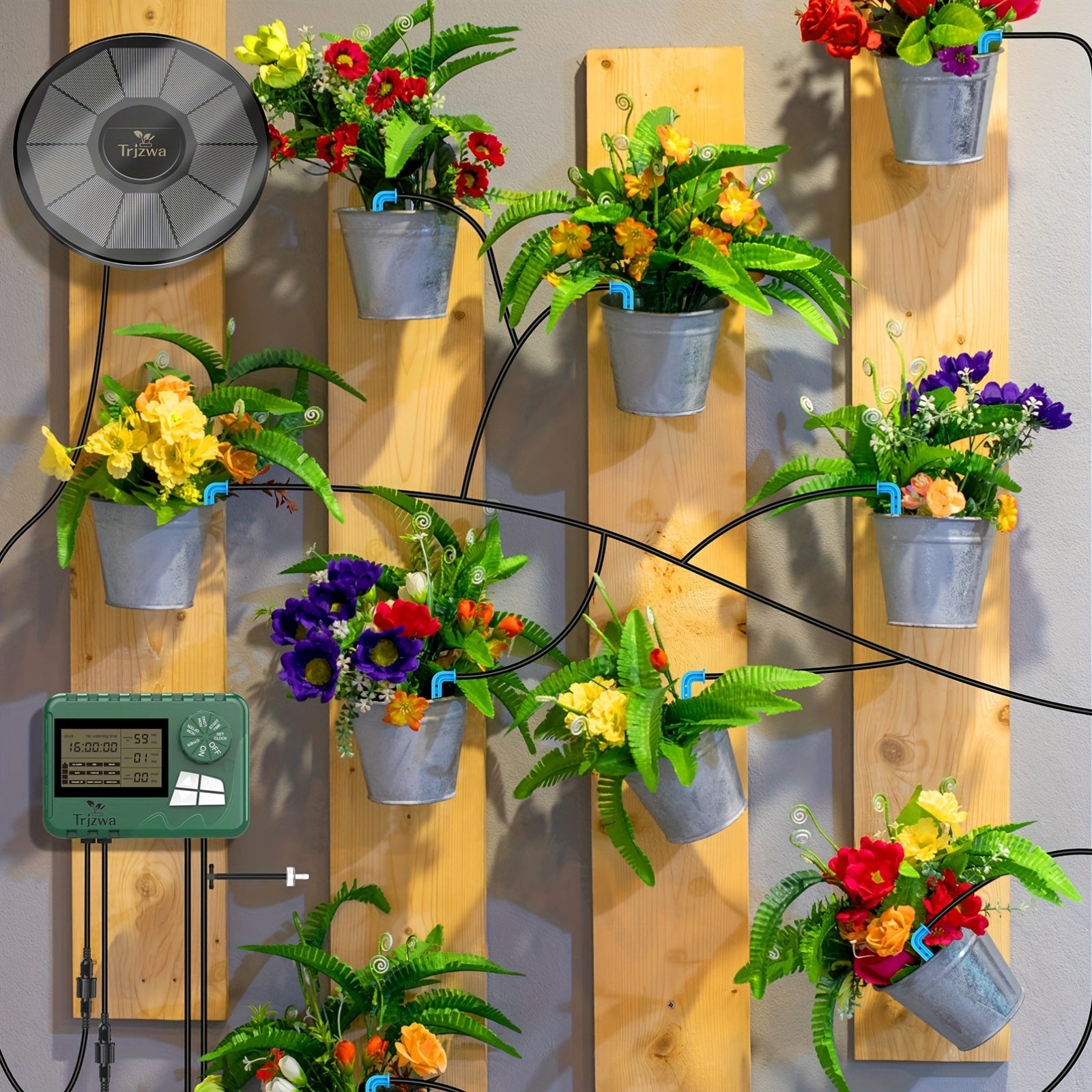 Solar Powered Drip Irrigation Kit with LCD Timer for Indoor Outdoor Gardening