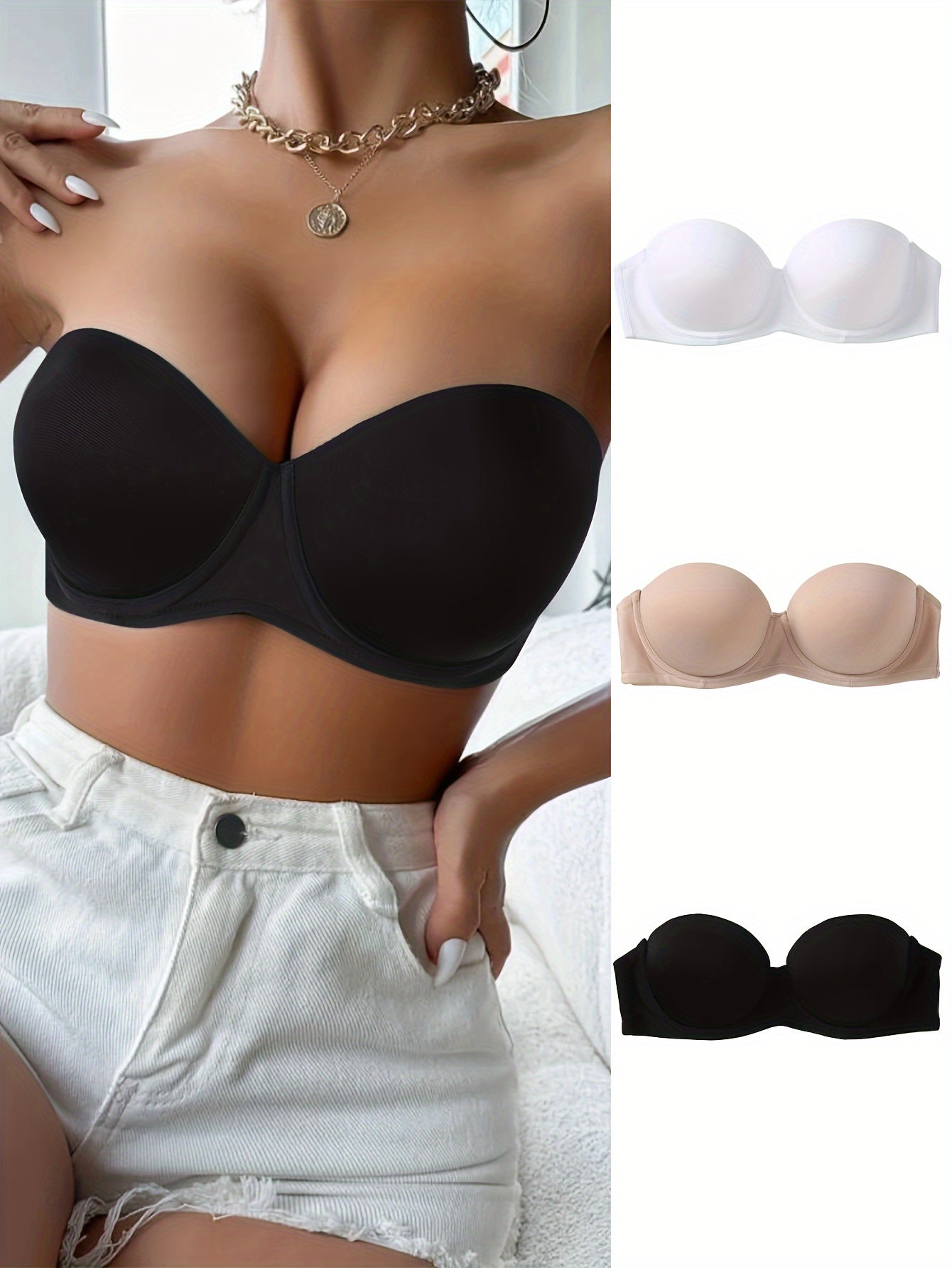 Women’s Strapless Underwire Lingerie Set with Push-Up Bra and Panties 3 Pieces