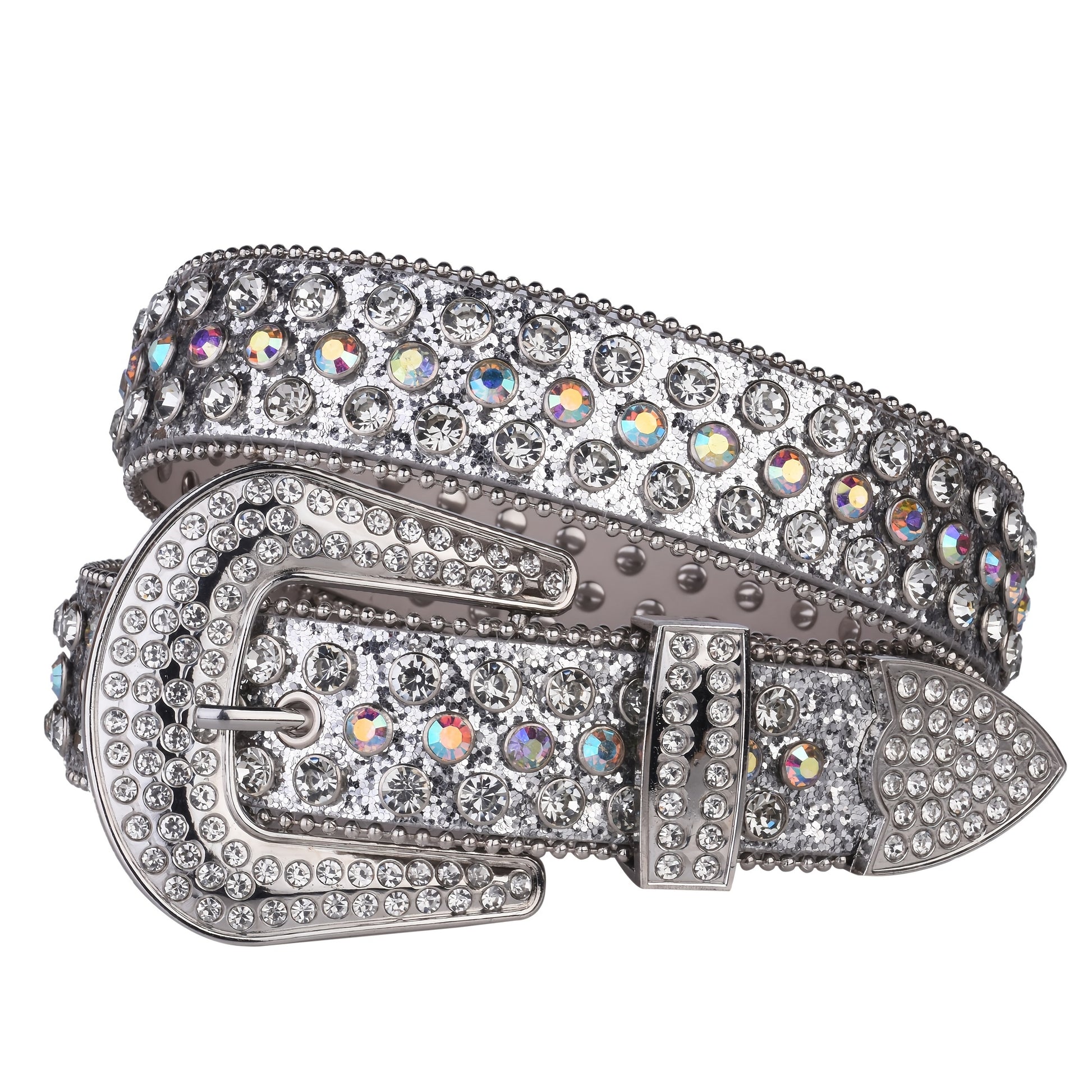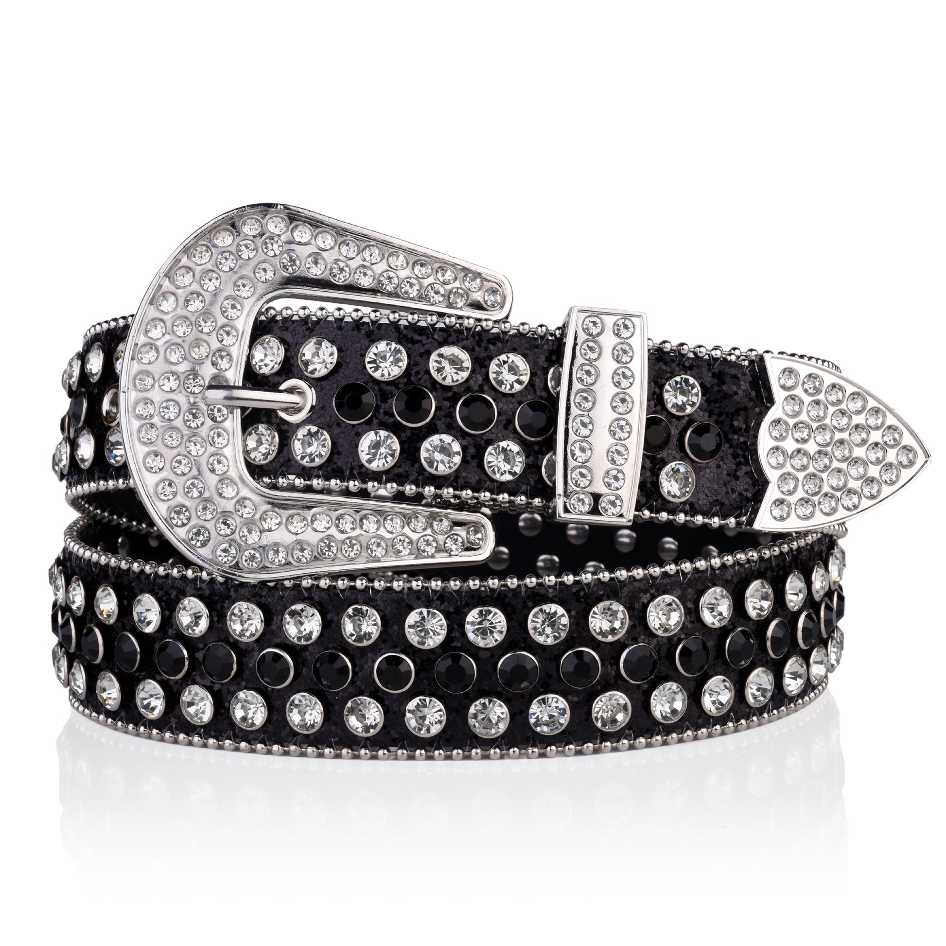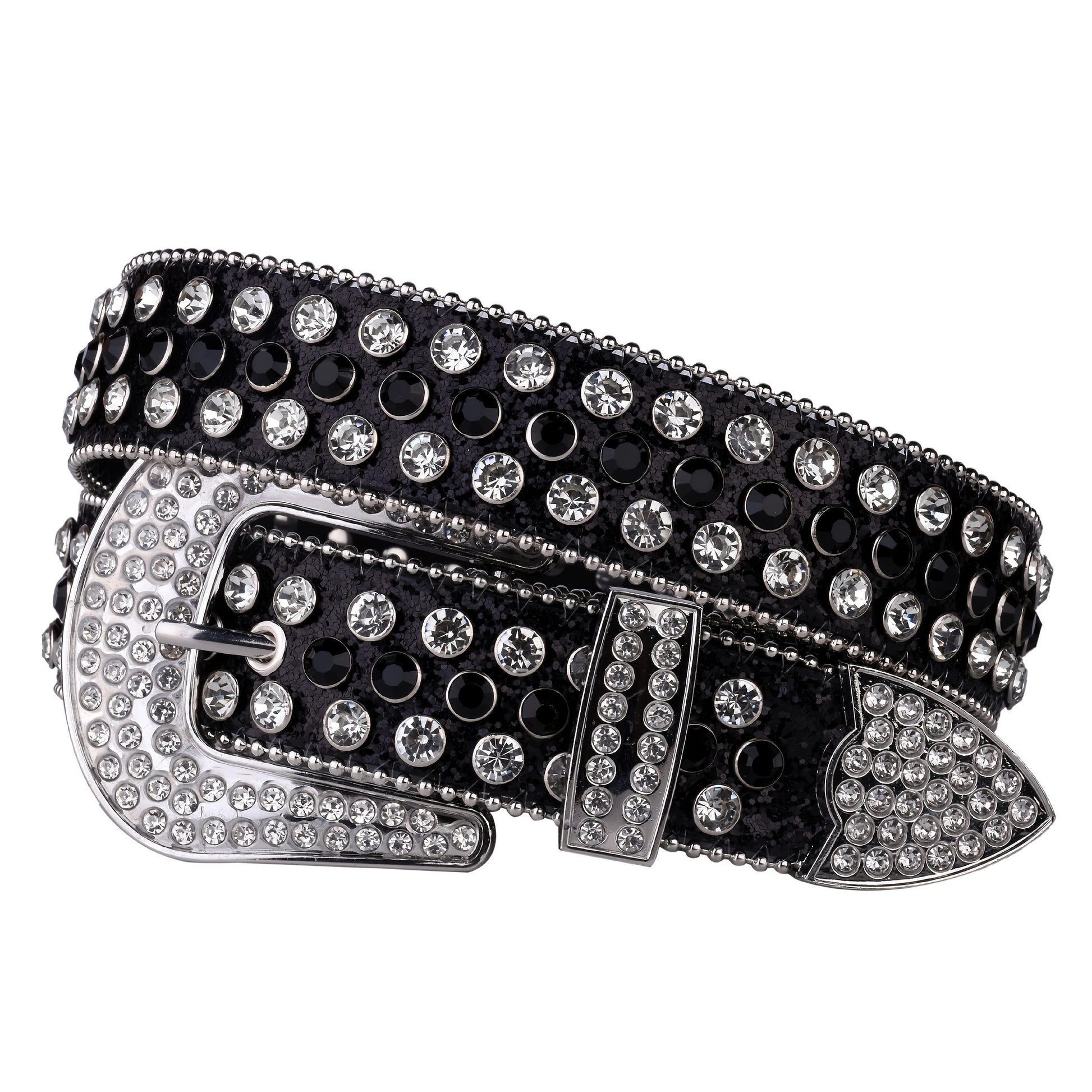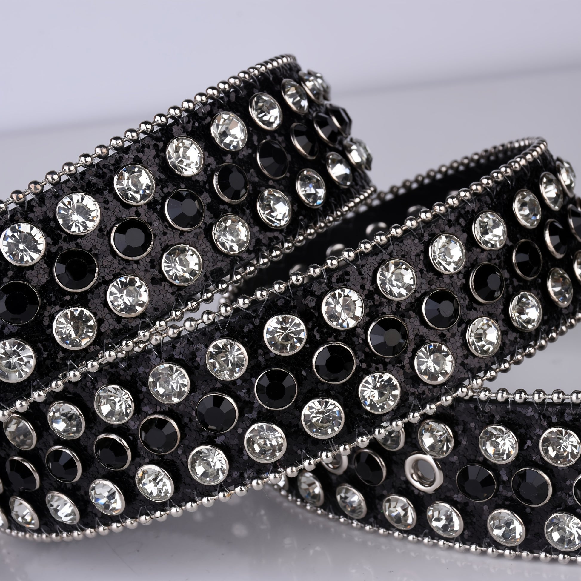 Women's Sparkling PU Leather Belt with Rhinestone Studs for Wedding and Valentine's Day