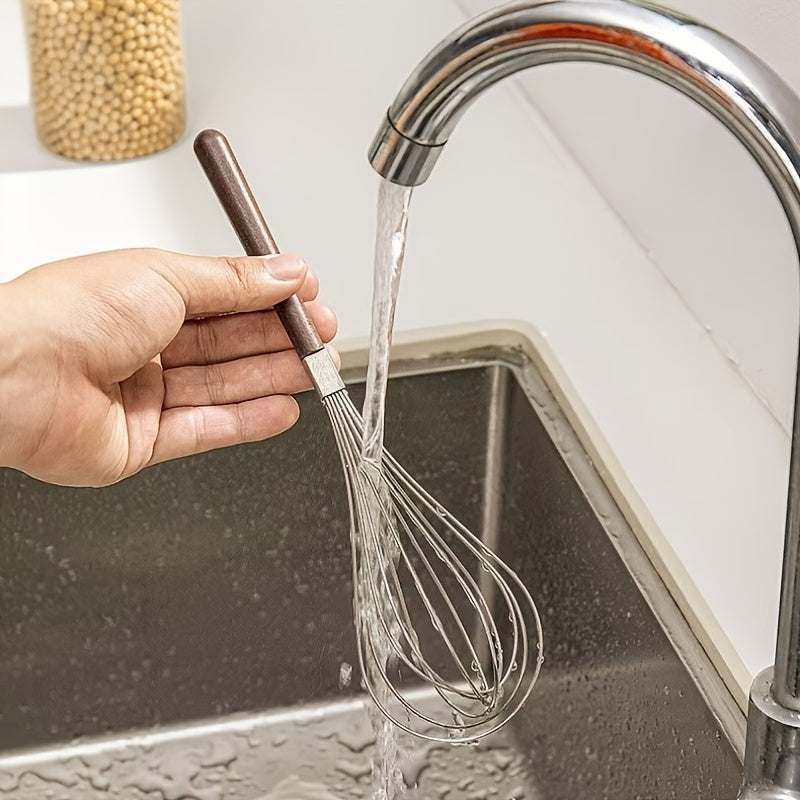 Stainless Steel Handheld Egg Beater with Wooden Handle for Baking