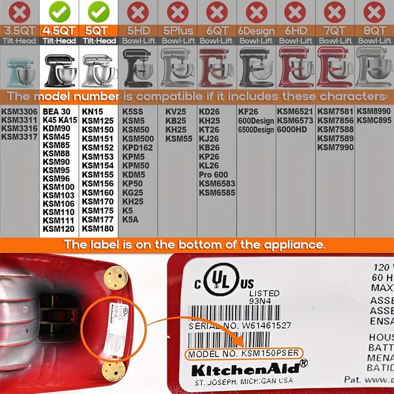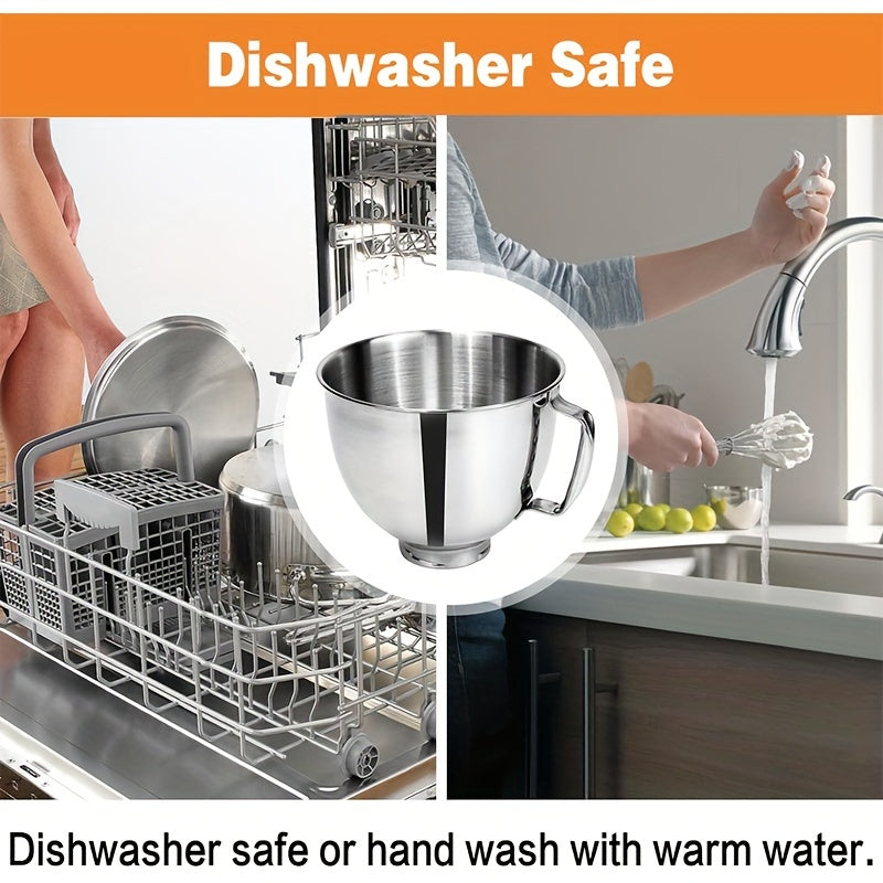 Stainless Steel Mixer Bowl 4.5 Qt Food Grade Replacement with Handle
