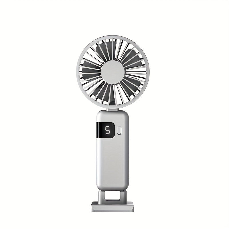 Portable Handheld Fan with LED Display, 5-Speed, Foldable, USB Rechargeable