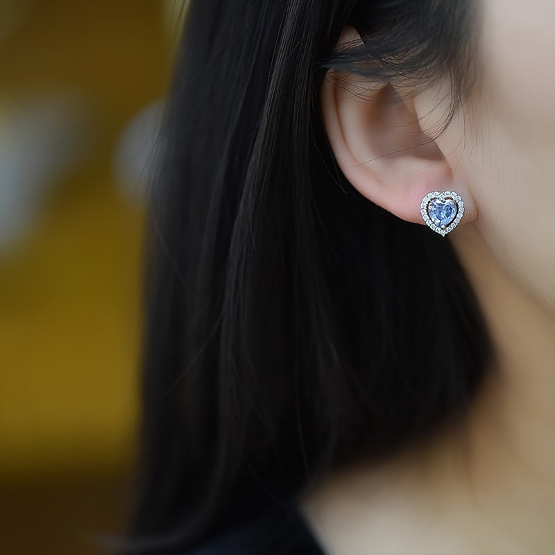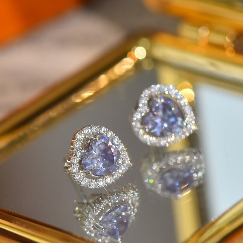 Purple Moissanite Heart Stud Earrings 1ct Hypoallergenic Silver Gift for Women