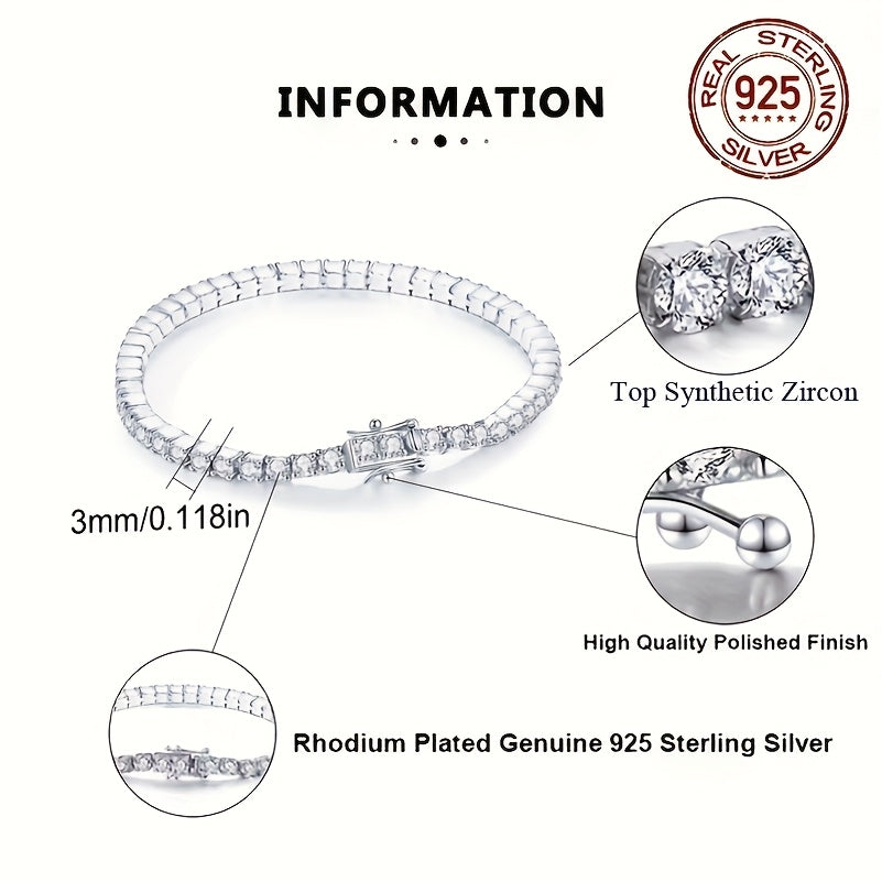 Sterling Silver Tennis Bracelet with White Cubic Zirconia 3mm Secure Clasp