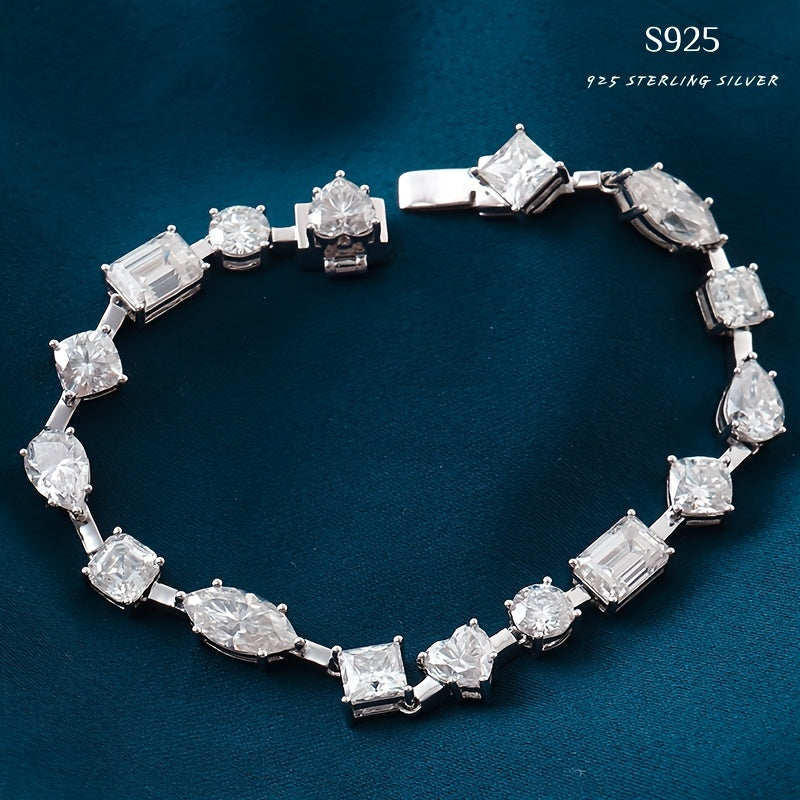 Sterling Silver Tennis Bracelet with Synthetic Zirconia for Special Events and Birthdays