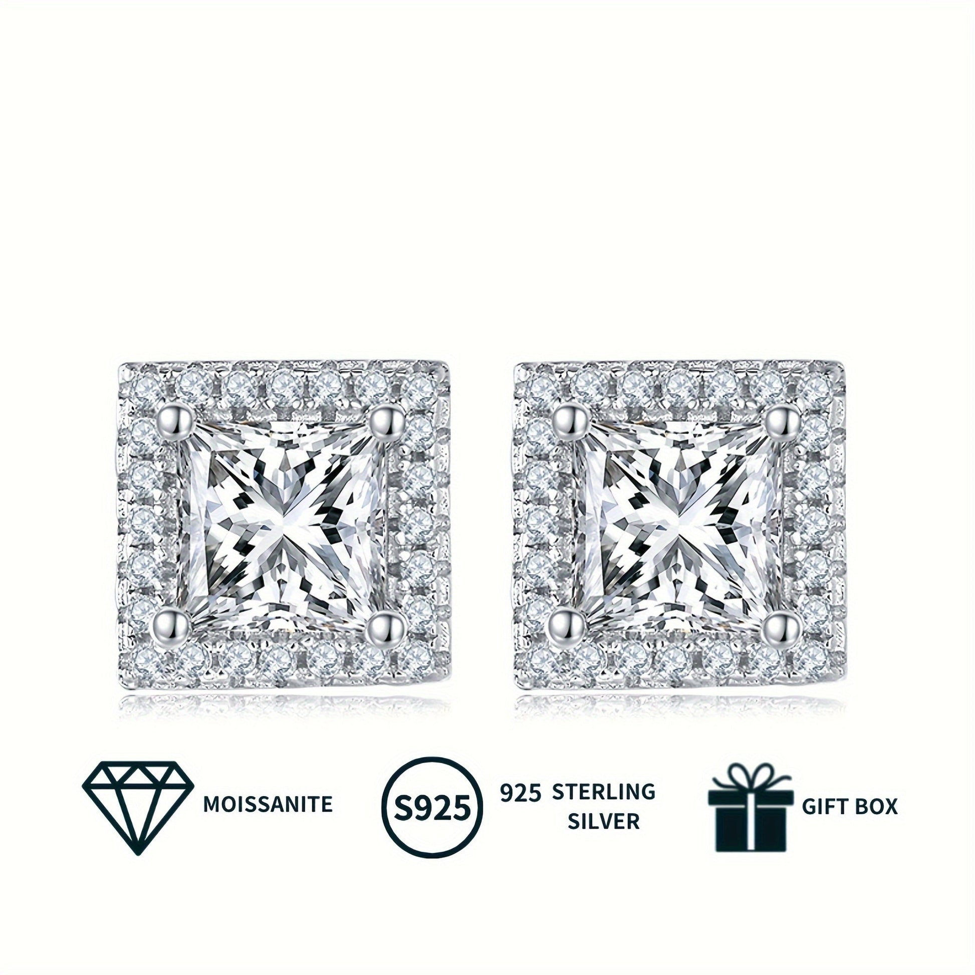 Square Moissanite Jewelry Set for Women with Necklace and Earrings Sterling Silver Engagement Wedding Anniversary Gift