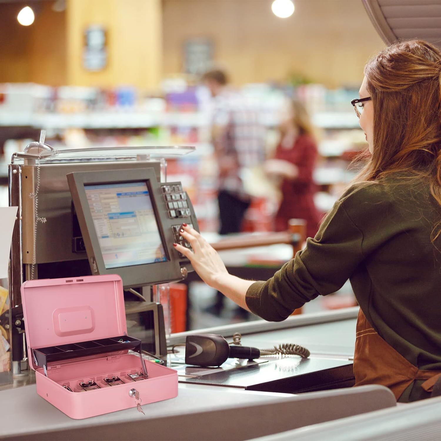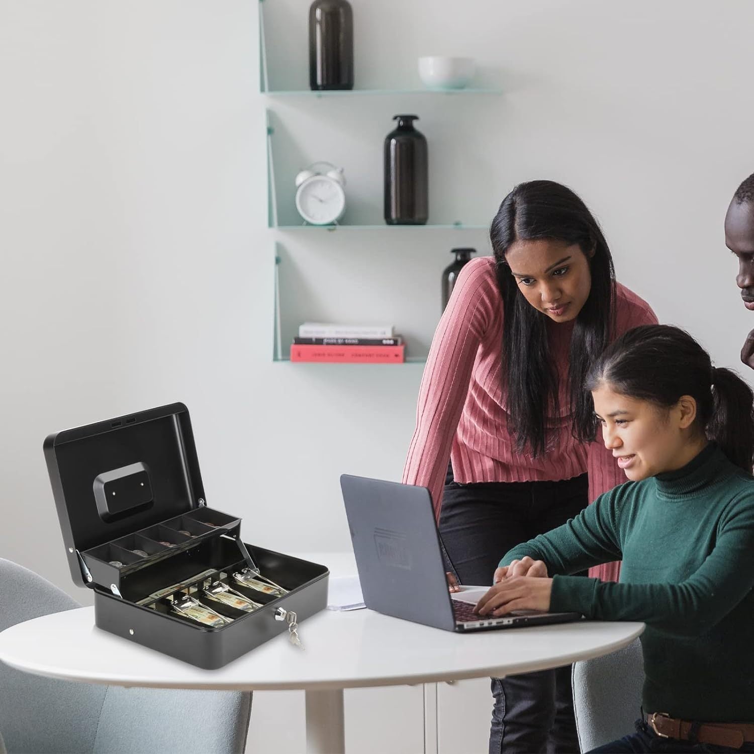Iron Cash Box with Lock and Coin/Bill Slots Portable Security Safe