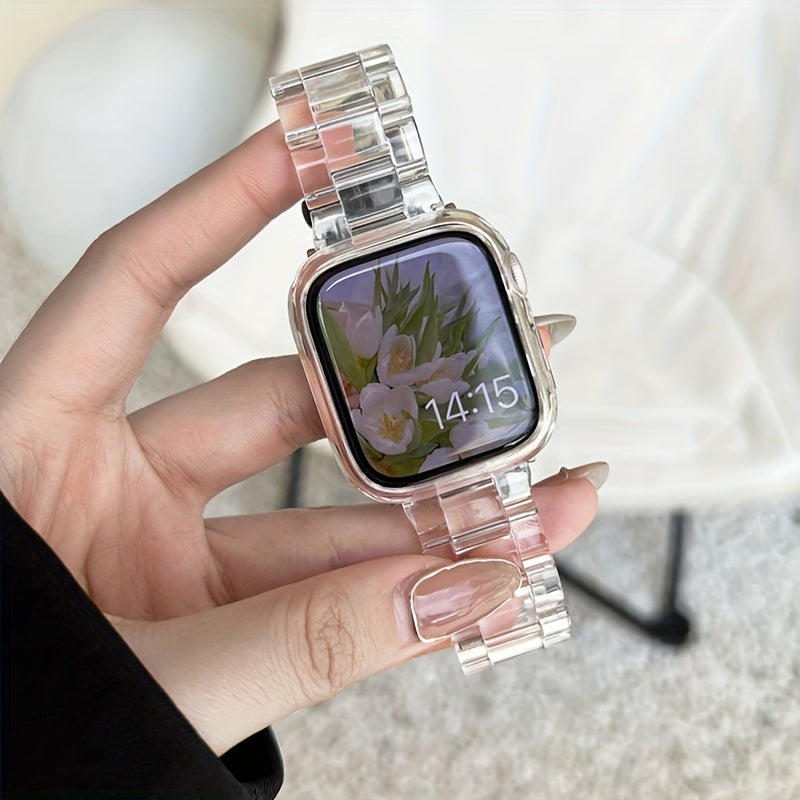 Acrylic Watch Strap for iWatch Men Women Transparent with Deployment Buckle Compatible with Series 3-9