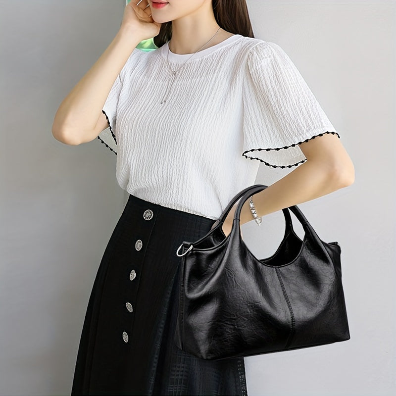 Women's PU Handbag with Detachable Strap Zip Closure Nylon Lining for Casual and Formal Use