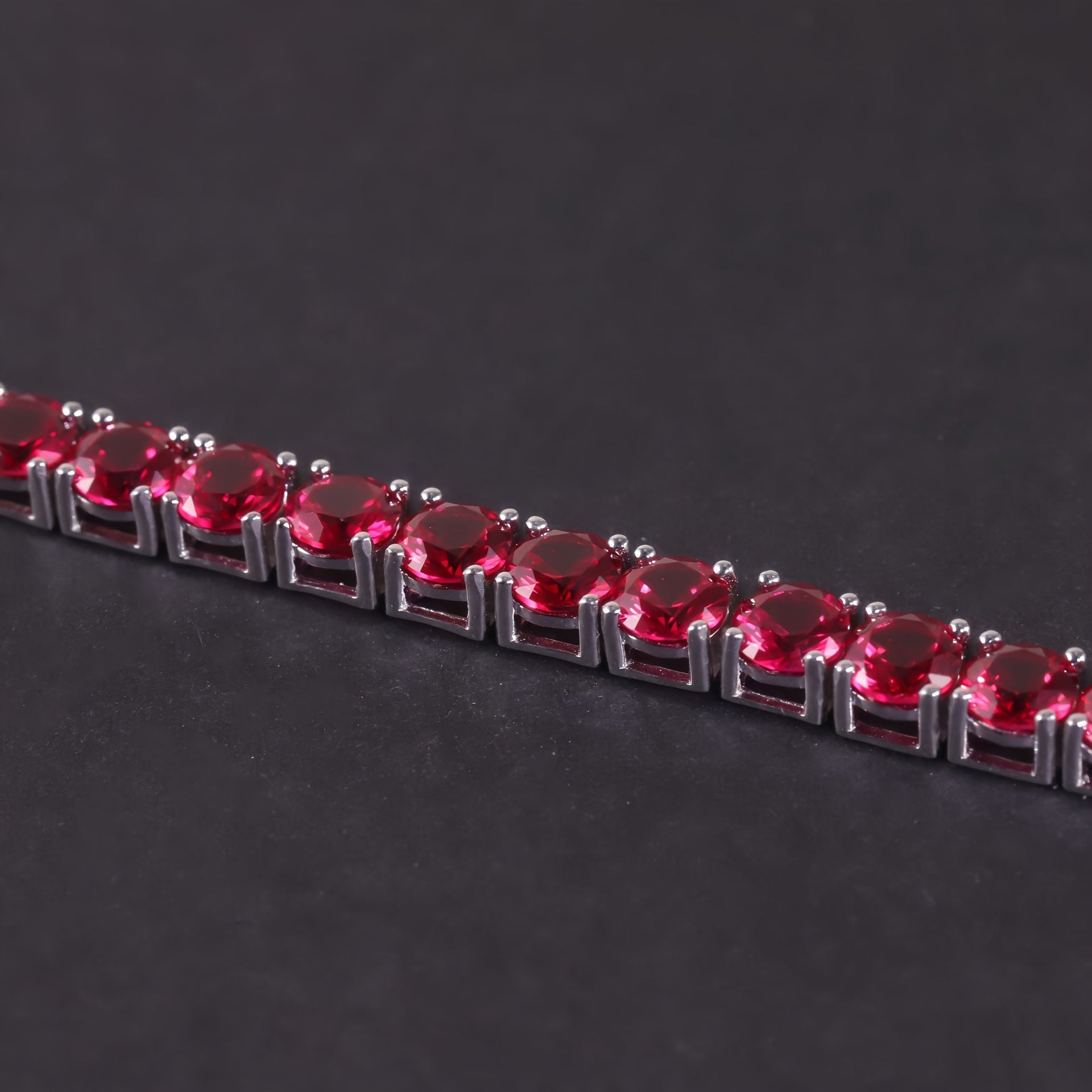 Sterling Silver and 18K Gold Plated Tennis Bracelet with Red Gemstones Flower Theme for December Birthstone Gift