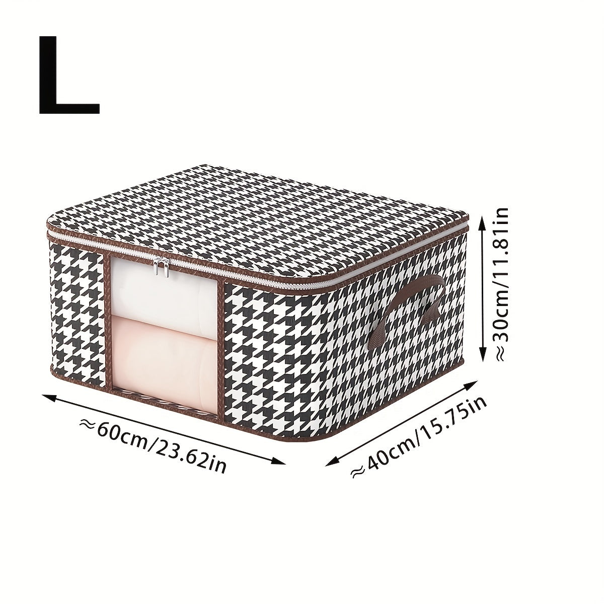 Houndstooth Pattern Clothes Storage Bag with Transparent Window Non-Woven Foldable Dustproof Organizer