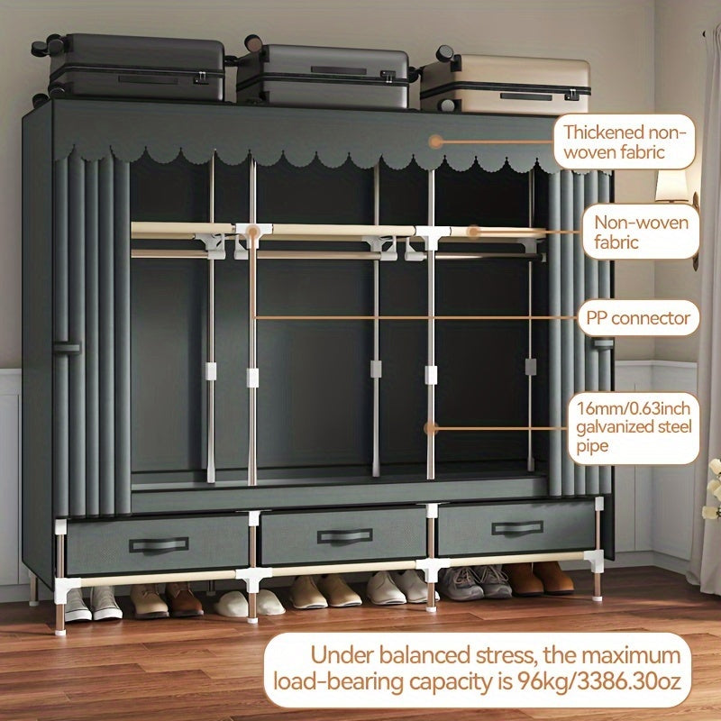Modern Steel Wardrobe with Sliding Curtain for Bedroom or Dorm Storage