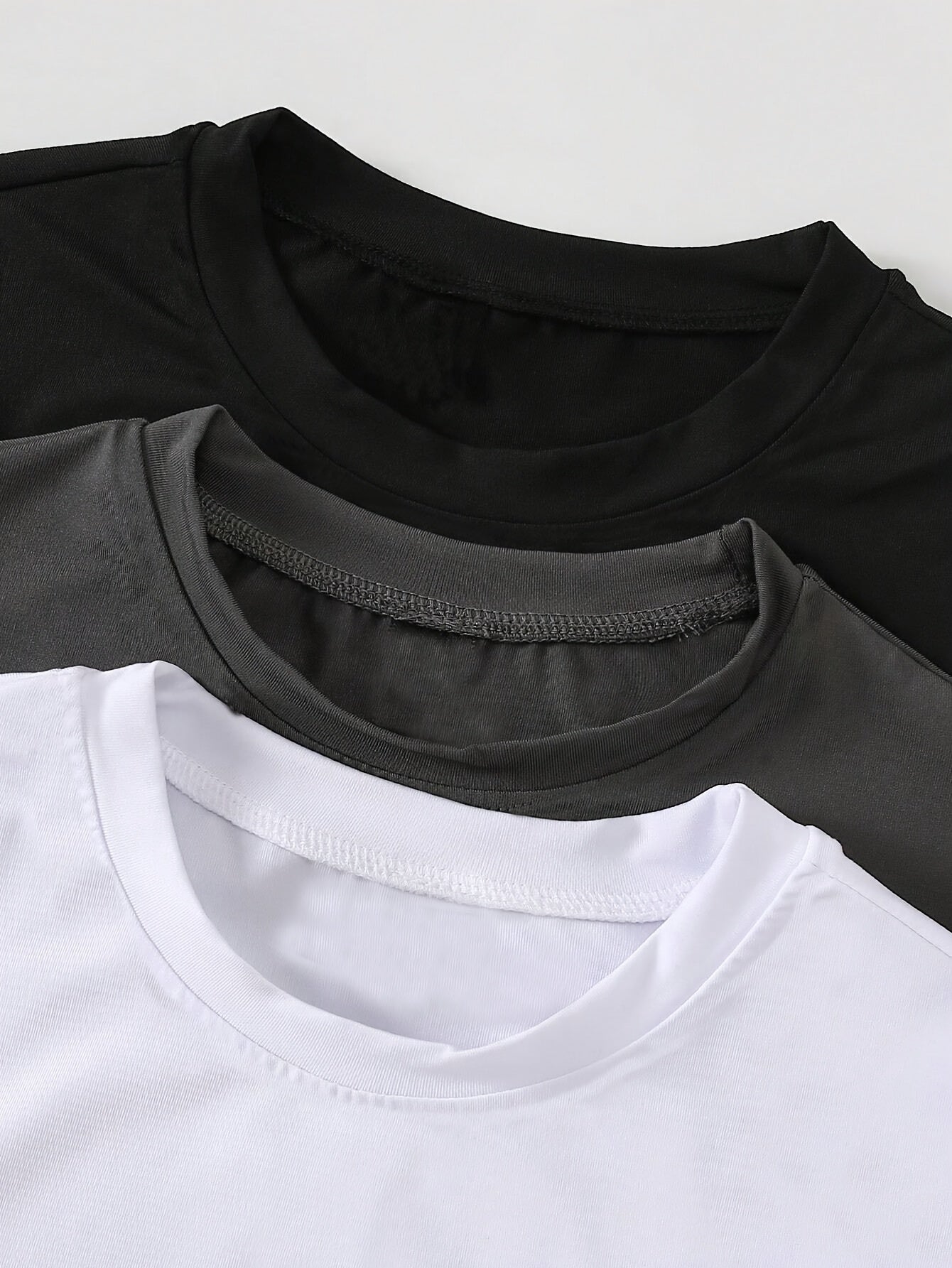 Women's Slim Fit Crop Tops Pack of 3 Short Sleeve Solid Color Polyester Casual