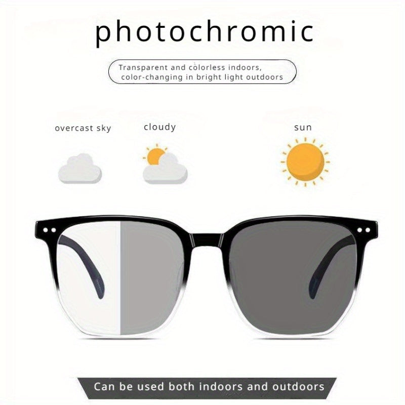Transitioning Photochromic Reading Glasses for Men and Women Square Large Frame Polycarbonate Lenses Adjustable Diopter