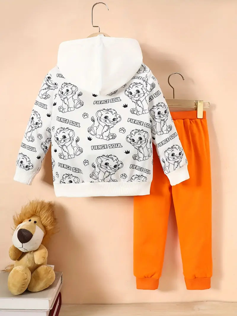 Boys' Fall Winter Lion Print Hoodie and Sweatpants Set Kids Casual Animal Pattern Polyester
