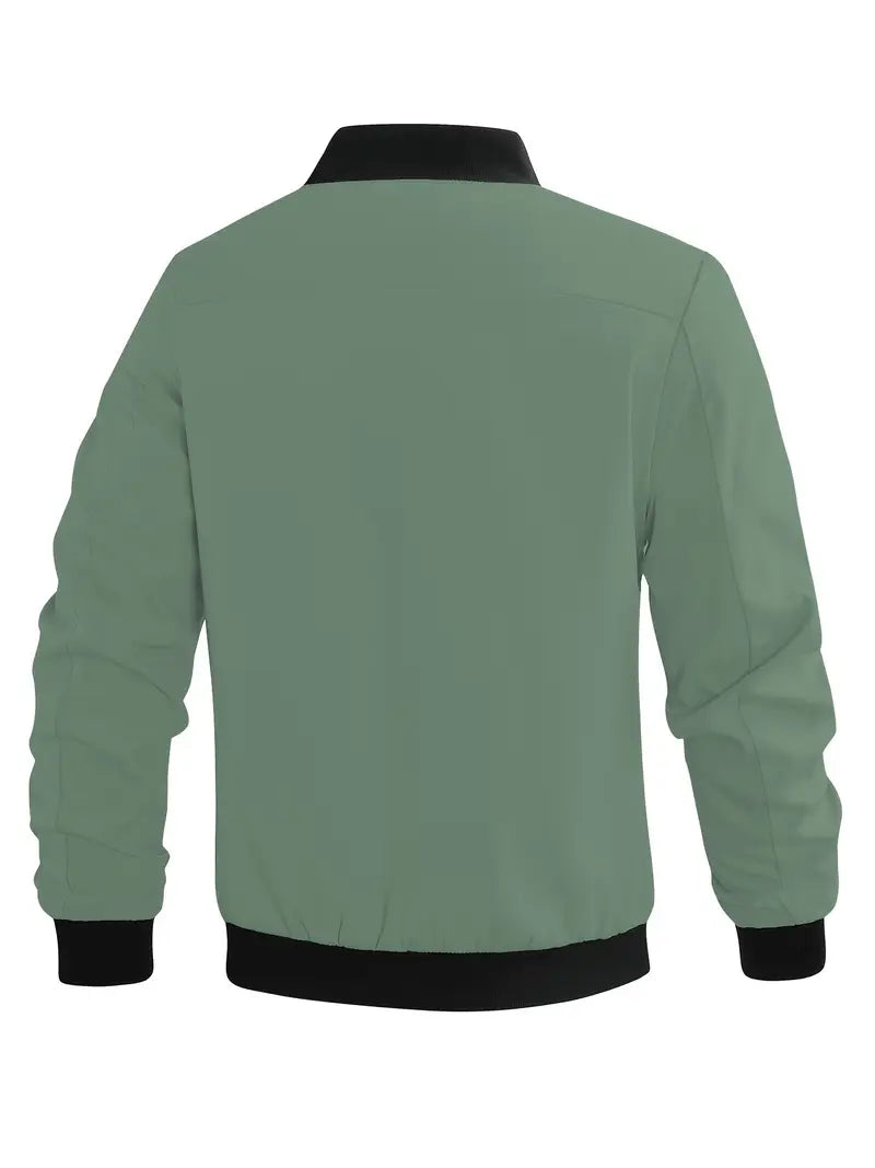 Plus Size Men's Windproof Jacket Casual Solid Zip Closure Fall Winter Polyester