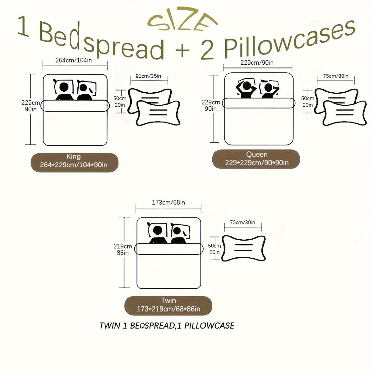 Tropical Palm Print Reversible Bedspread Set with 2 Pillowcases 3 Pieces Ultra Soft Polyester