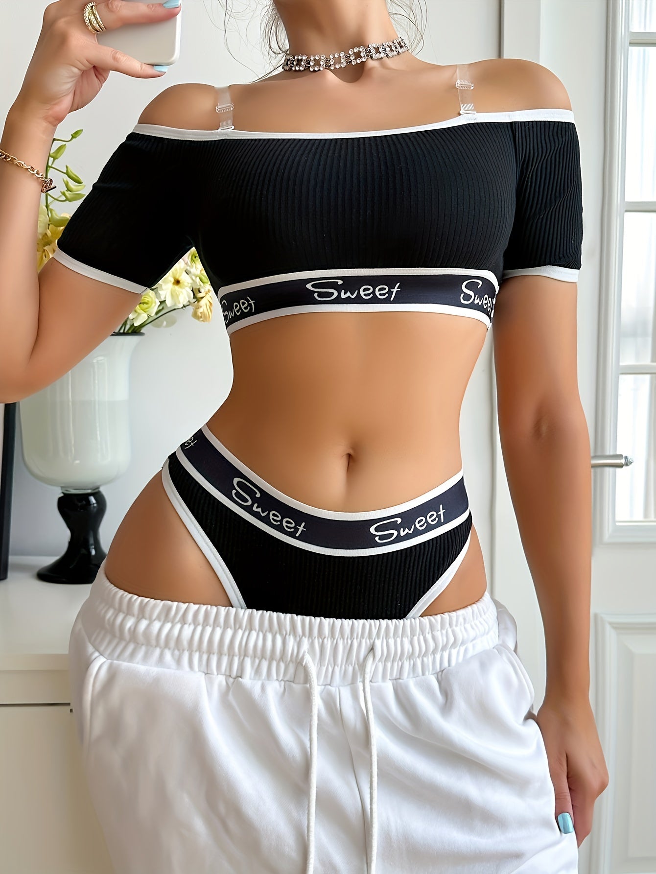 Women's Seamless Letter Rim Bra and Elastic Panties Lingerie Set