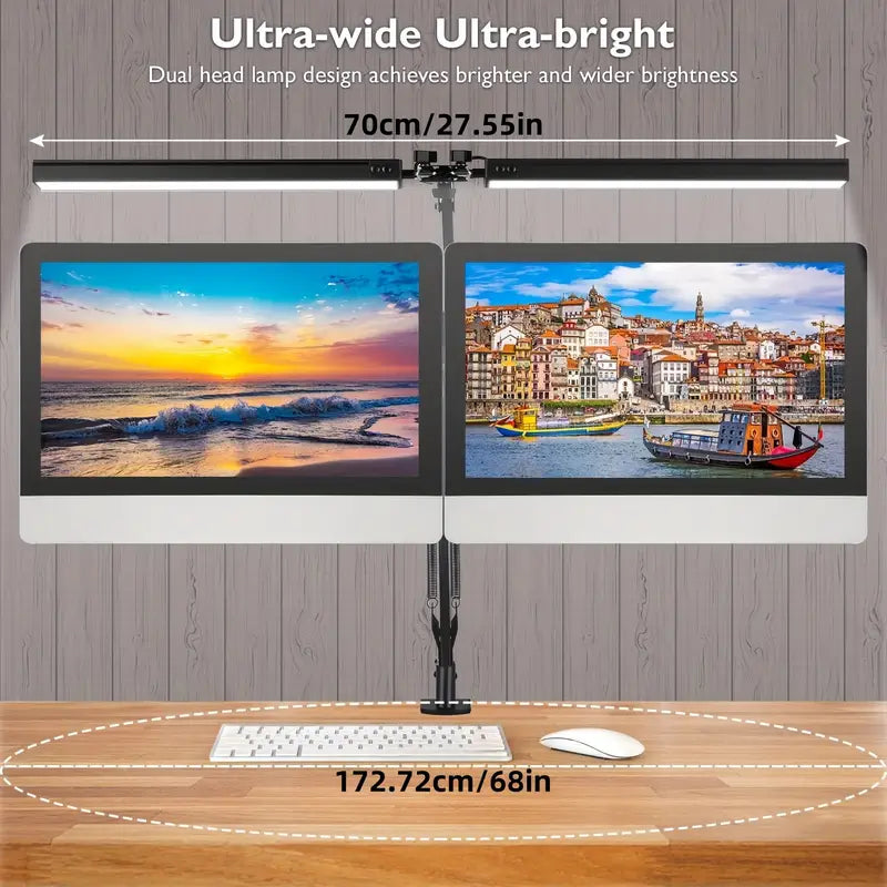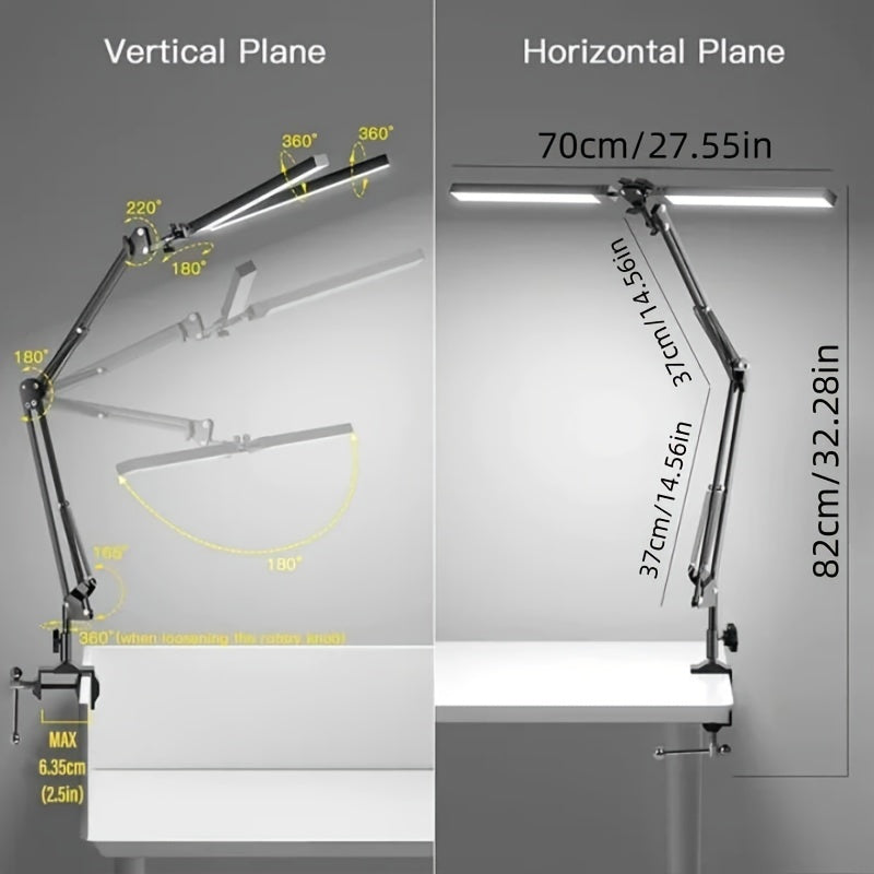 Ultra Wide Double Head LED Desk Lamp Clamp Swing Arm Dimmable USB Powered Black