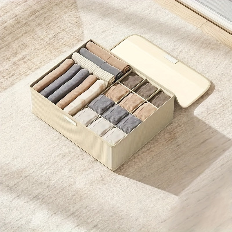 Underwear Organizer Drawer Storage Box with Lid for Socks Fabric Dorm Use