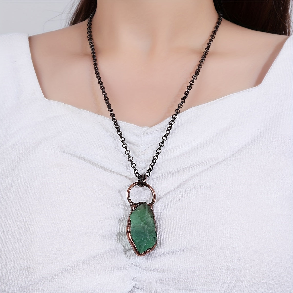 Natural Stone Pendant Necklace for Women Vintage Copper Jewelry Gift