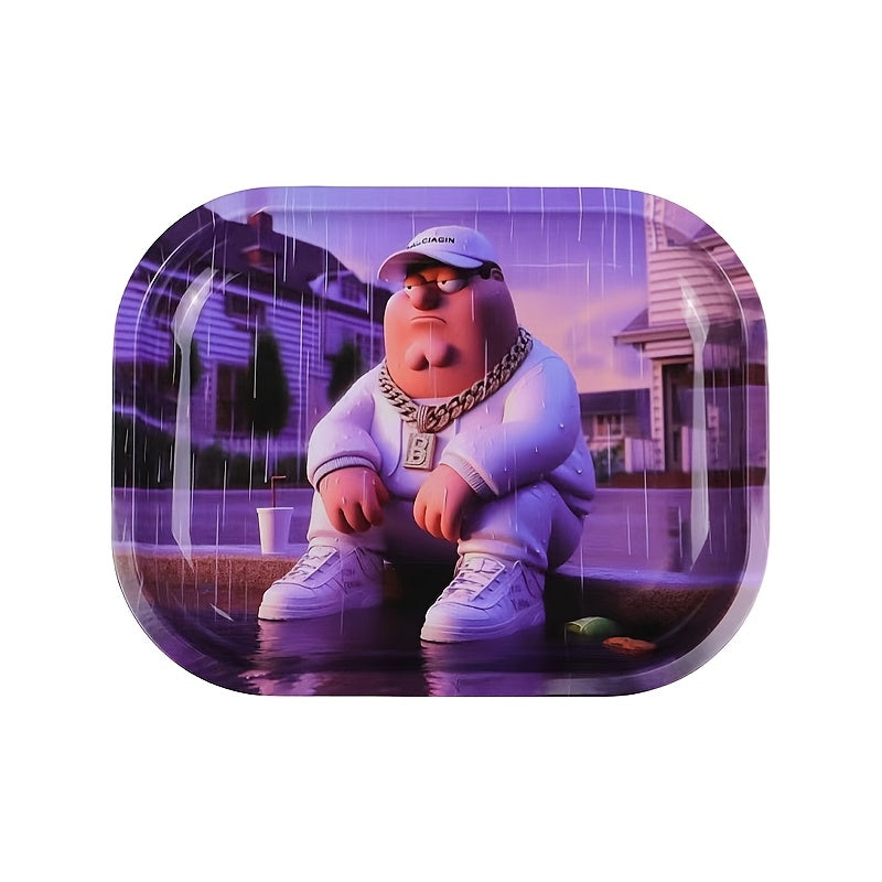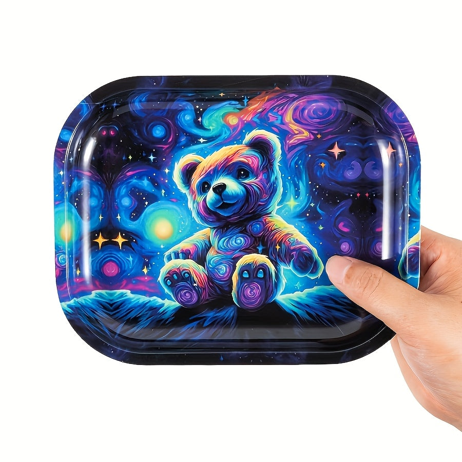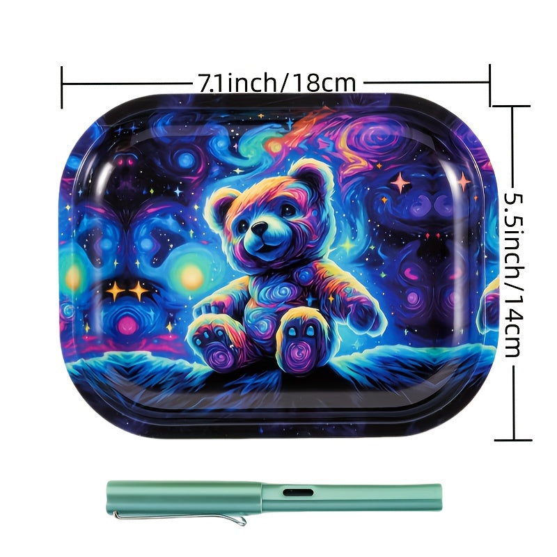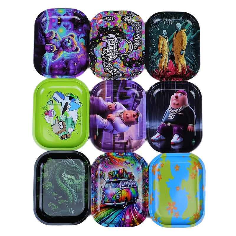 Unisex Metal Rolling Tray, Illustration Design, 19.05x13.97cm for Tobacco Accessories