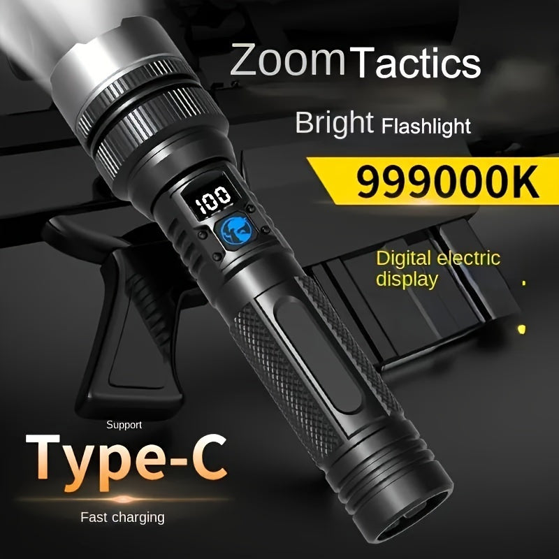 Rechargeable LED Flashlight with Digital Display, Compact Durable for Outdoor Use