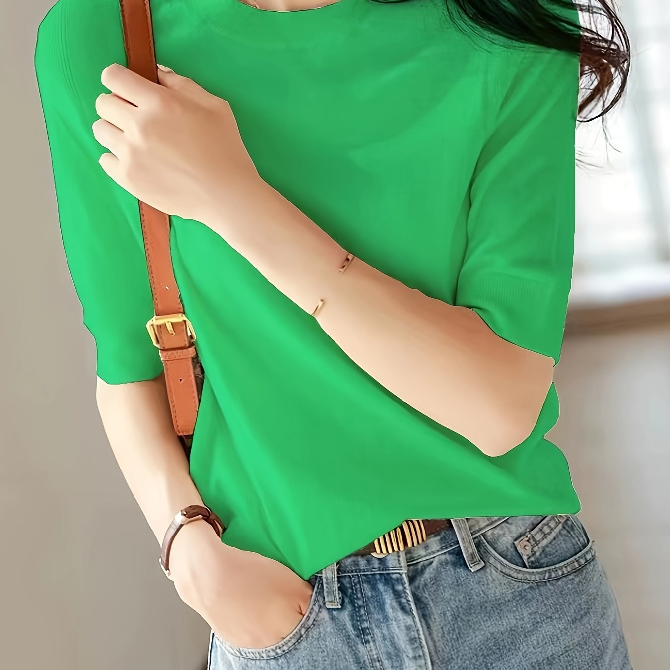Women's Knit Sweater Crew Neck Solid Short Sleeve Spring Summer Casual