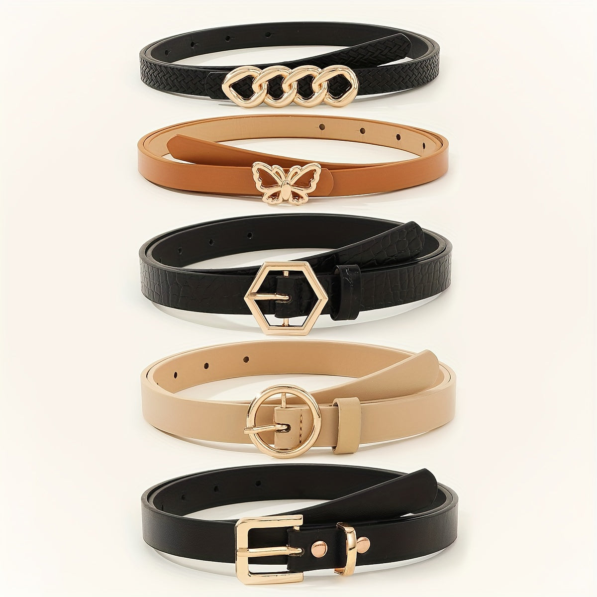 Women's Denim Skirt with Chain Buckle and Thin Belt Five-Pack for Daily Wear
