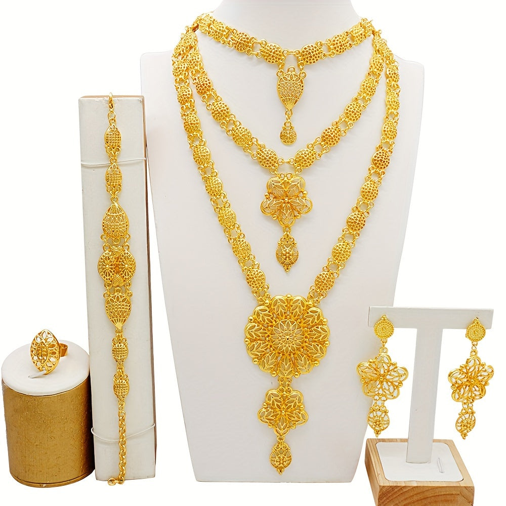 Vintage Bohemia Zinc Alloy Jewelry Set with Hollow Flower Necklace and Dangle Earrings