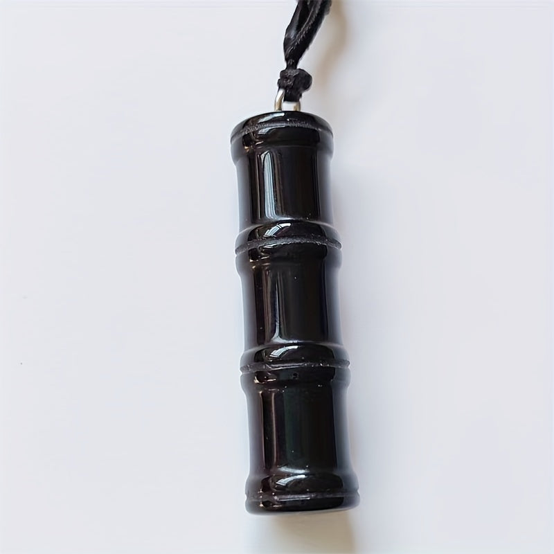 Natural Stone Pendant Necklace with Bamboo Design and Braided Rope for Casual and Party Wear