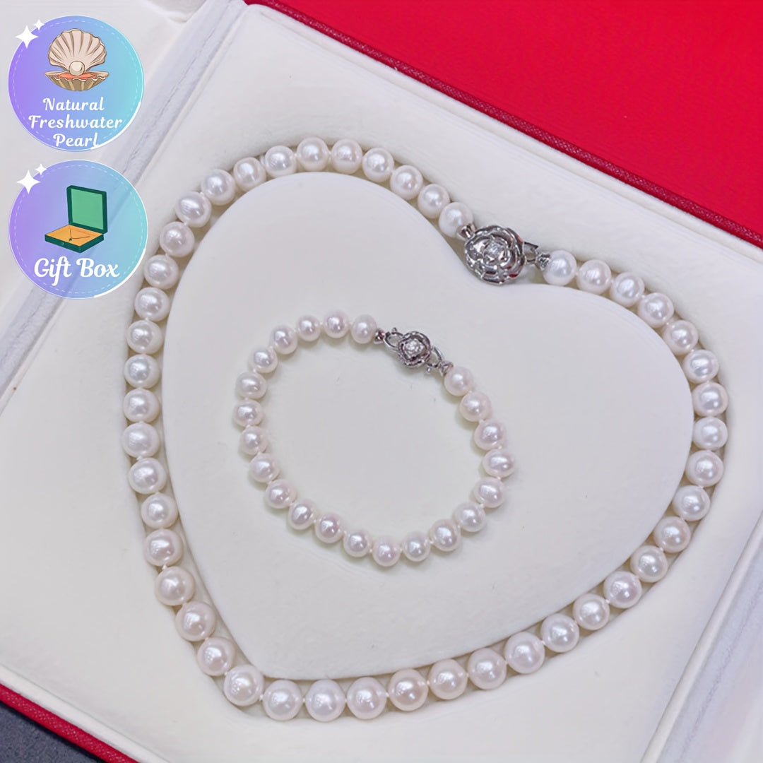 Elegant Freshwater Pearl Jewelry Set with Camellia Clasp Necklace and Bracelet for Special Occasions