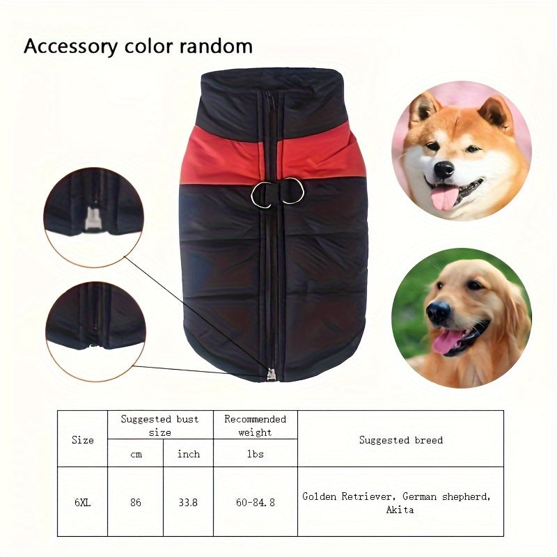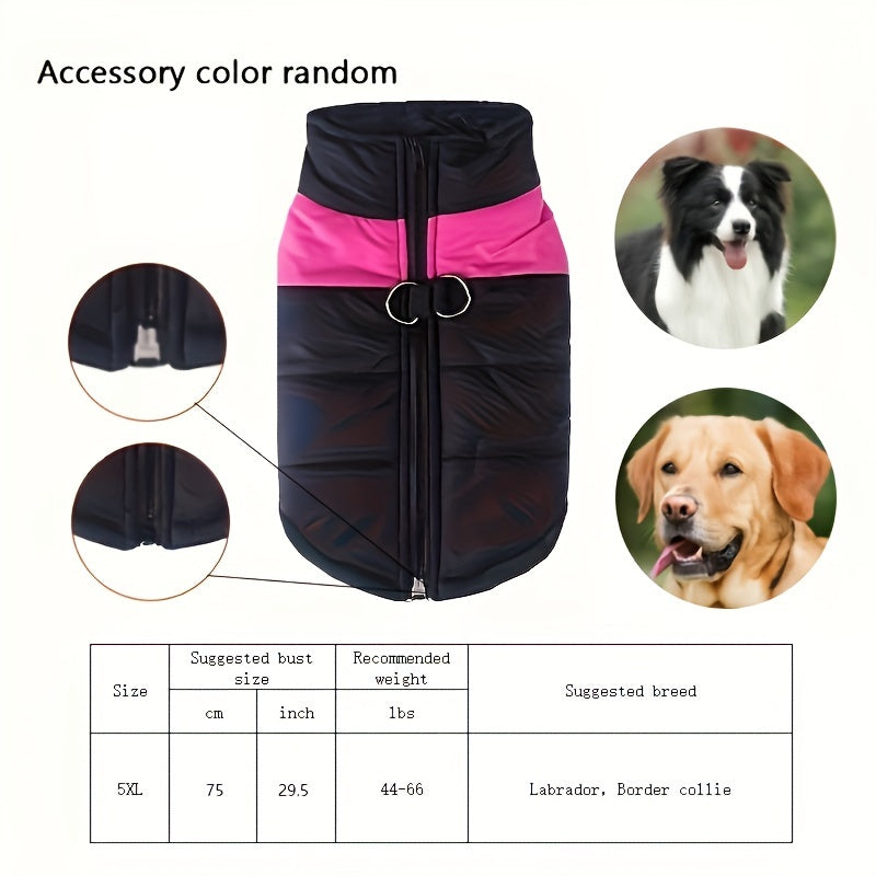 Windproof Winter Dog Jacket for Medium Breeds Polyester Zippered Warm Outdoor Apparel