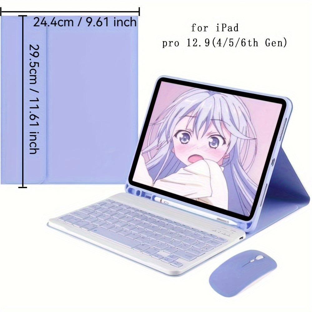 Wireless iPad Pro 12.9 Inch and Air M2 13 Inch PU Leather Case with Pencil Slot and Keyboard