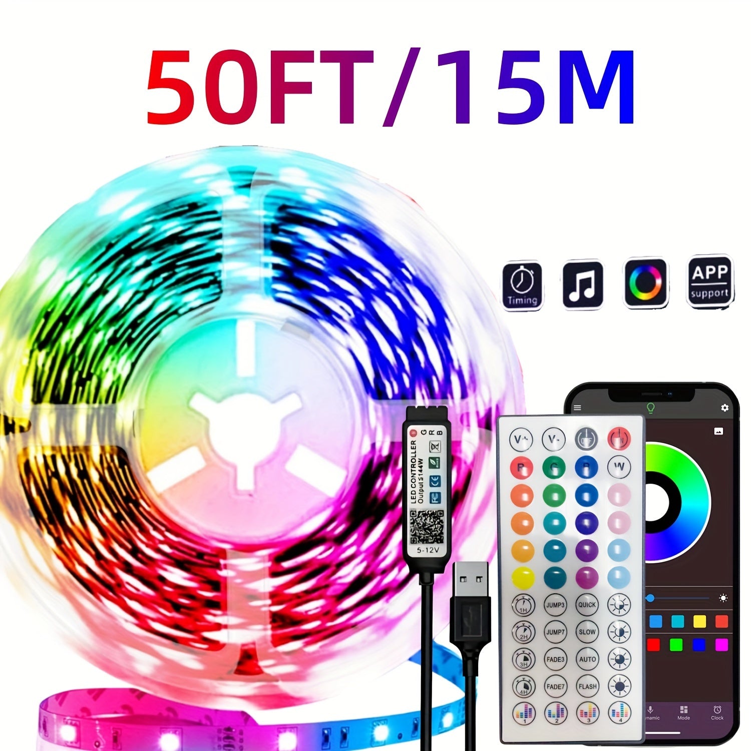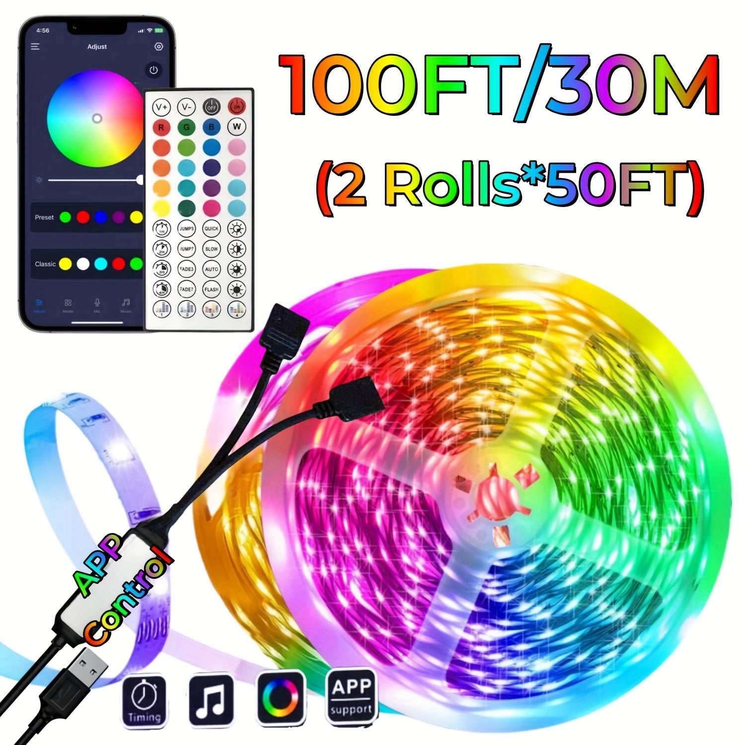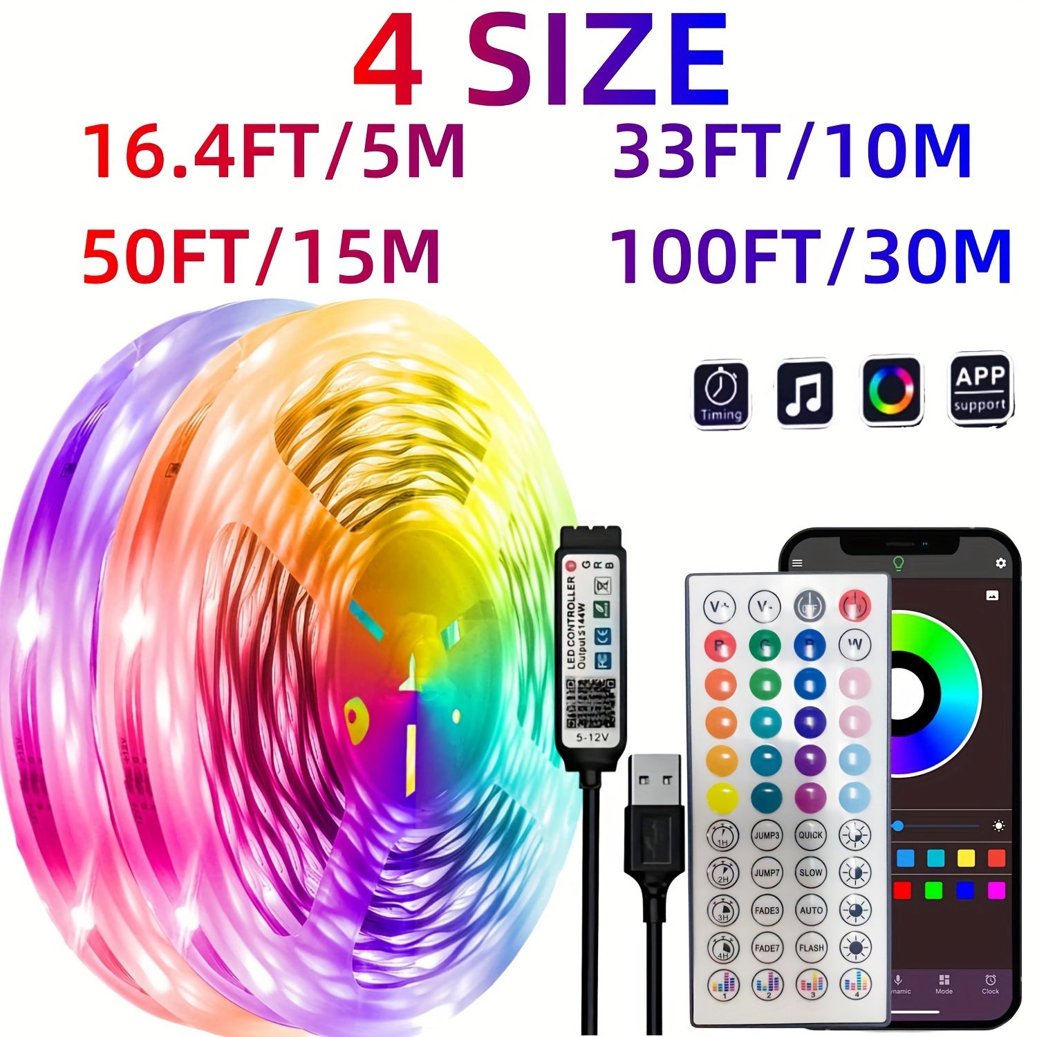 Wireless LED Light Strip with Microphone Music Sync Remote Control for Room and Party
