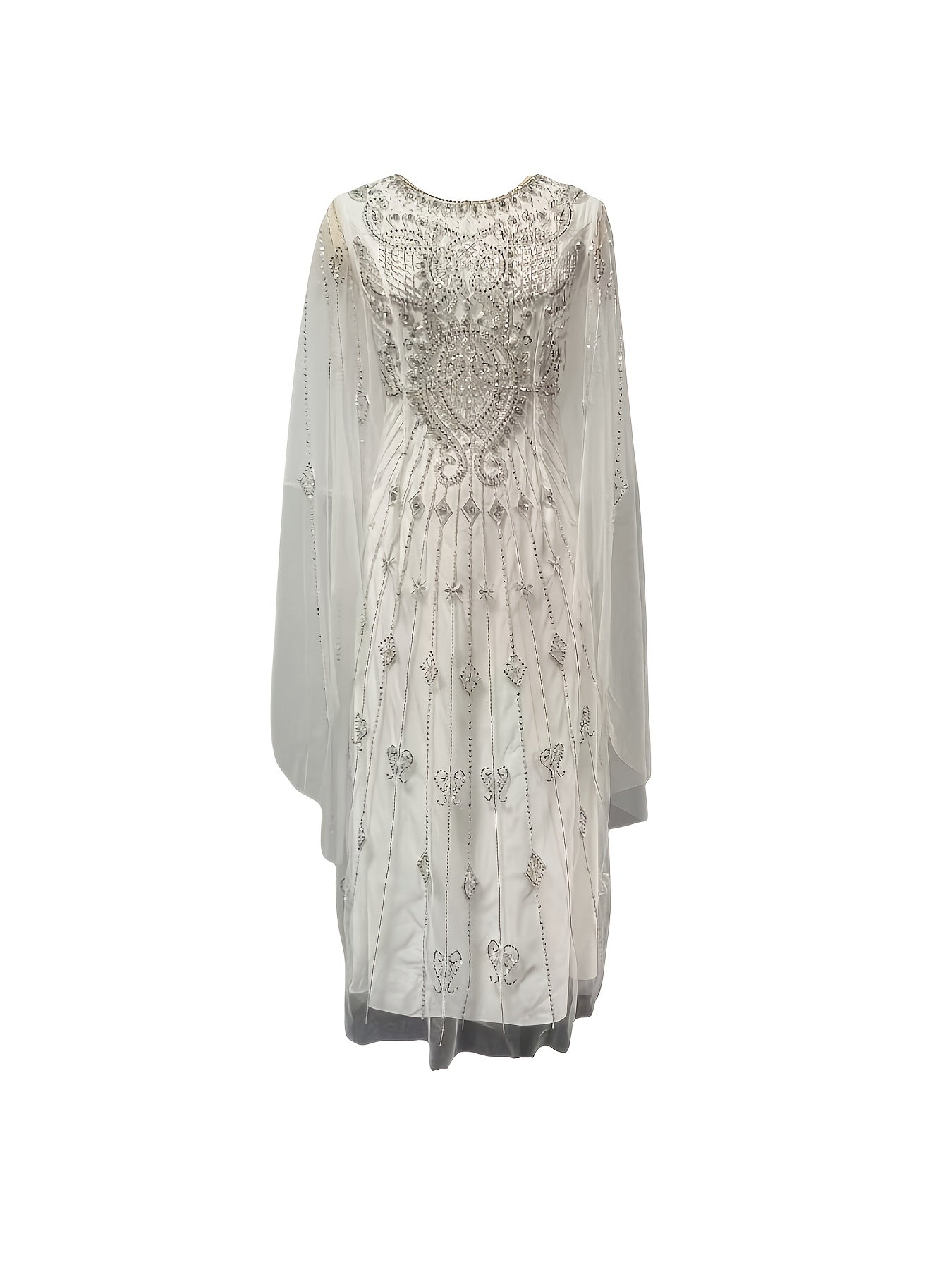 Women Beaded A-Line Evening Gown with Sequin Detailing Long Sleeve Red