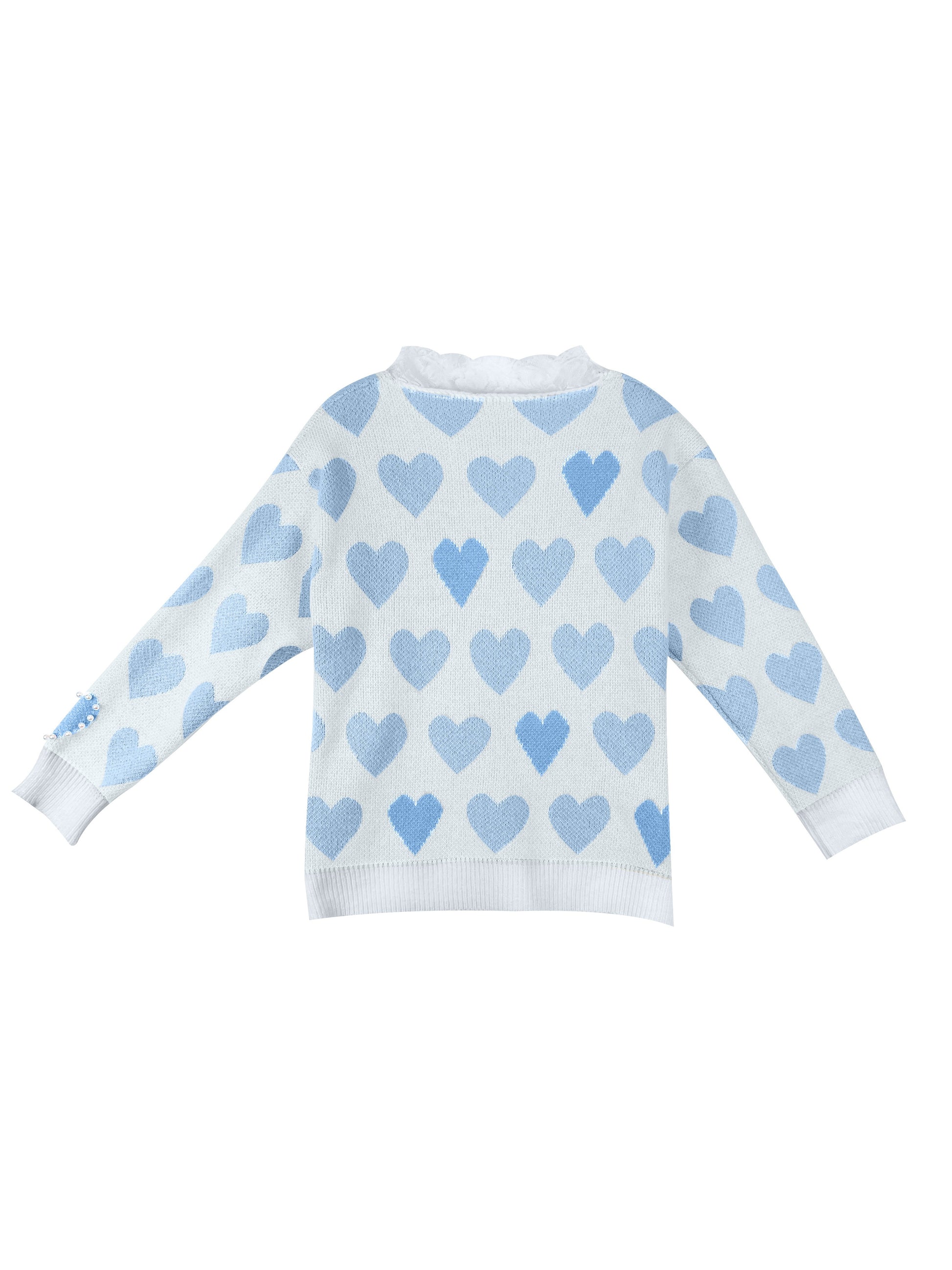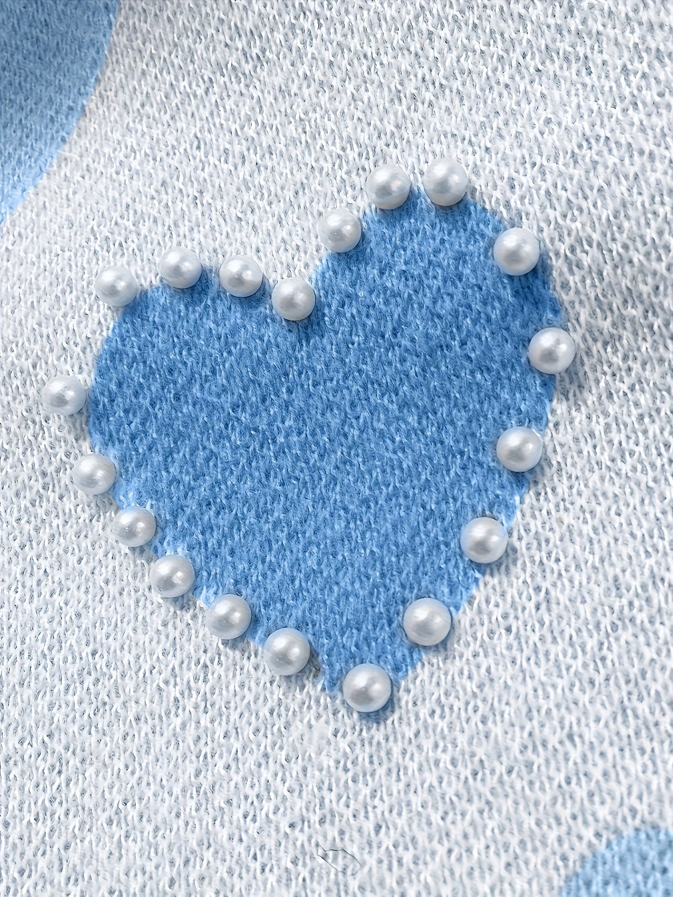 Women Pearl Embroidery V-Neck Knit Top Polyester Basic Spring Fall