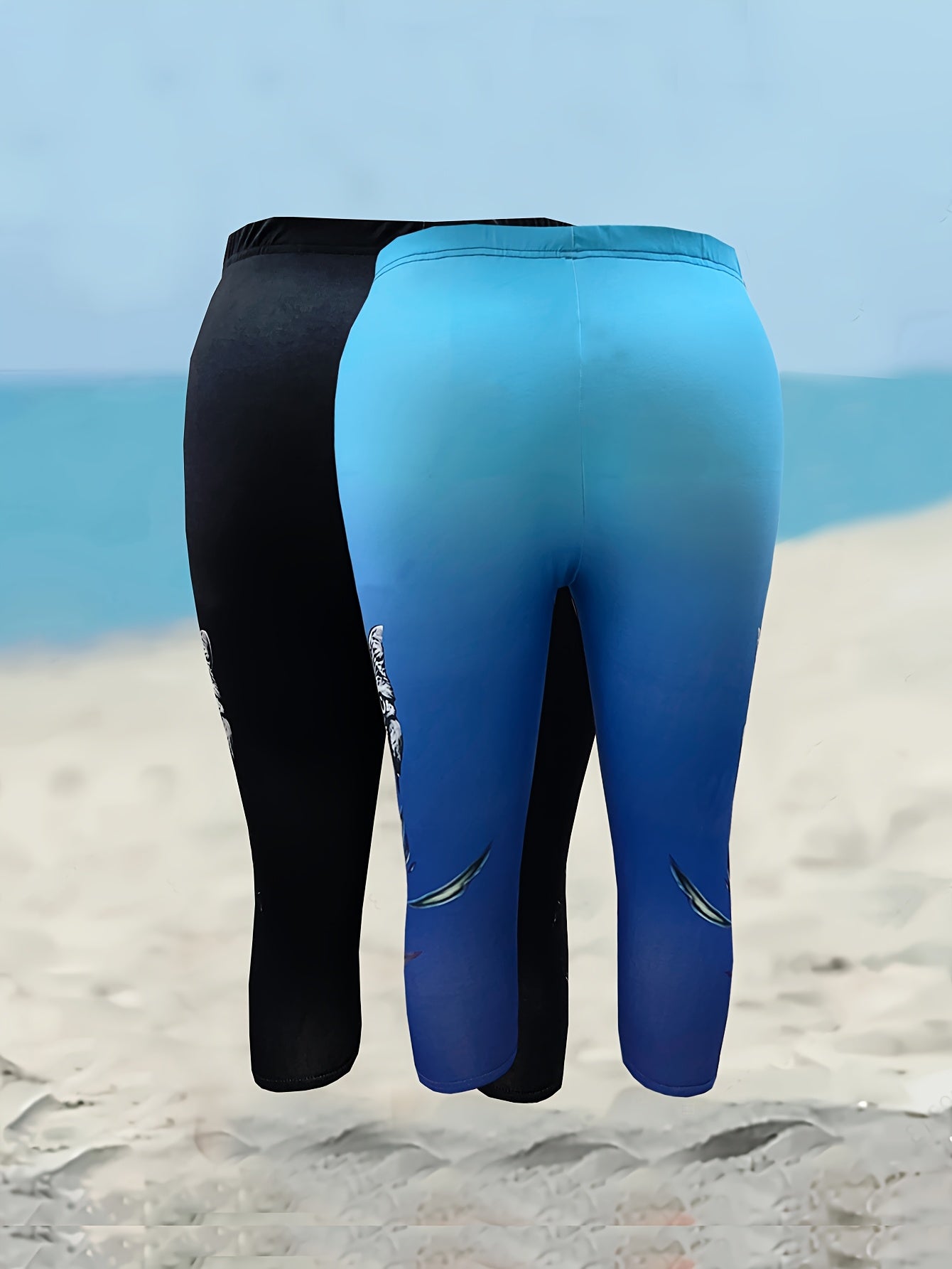 Women Plus Size Cat Print Capri Pants Fitted Comfortable Stretchable