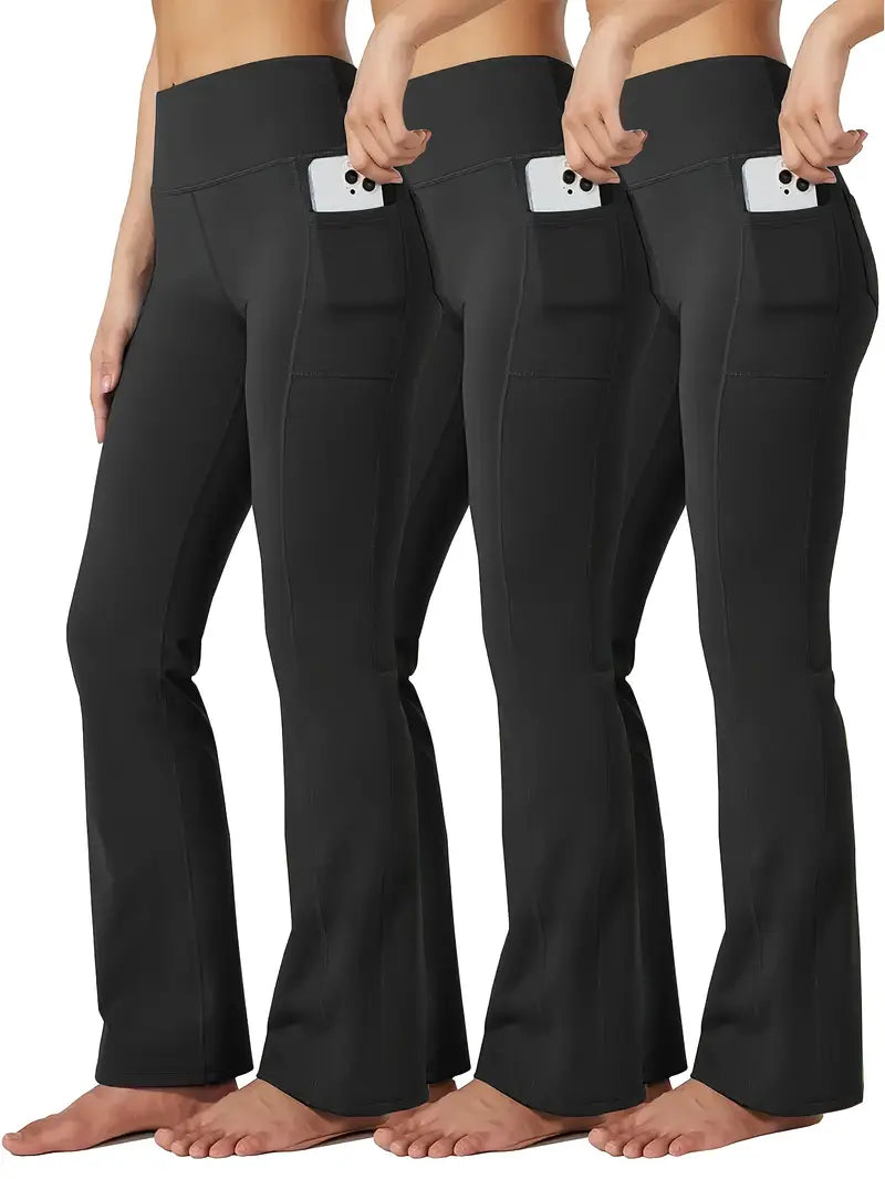 Women Plus Size Flared Yoga Pants With Phone Pockets Black Burgundy Maroon
