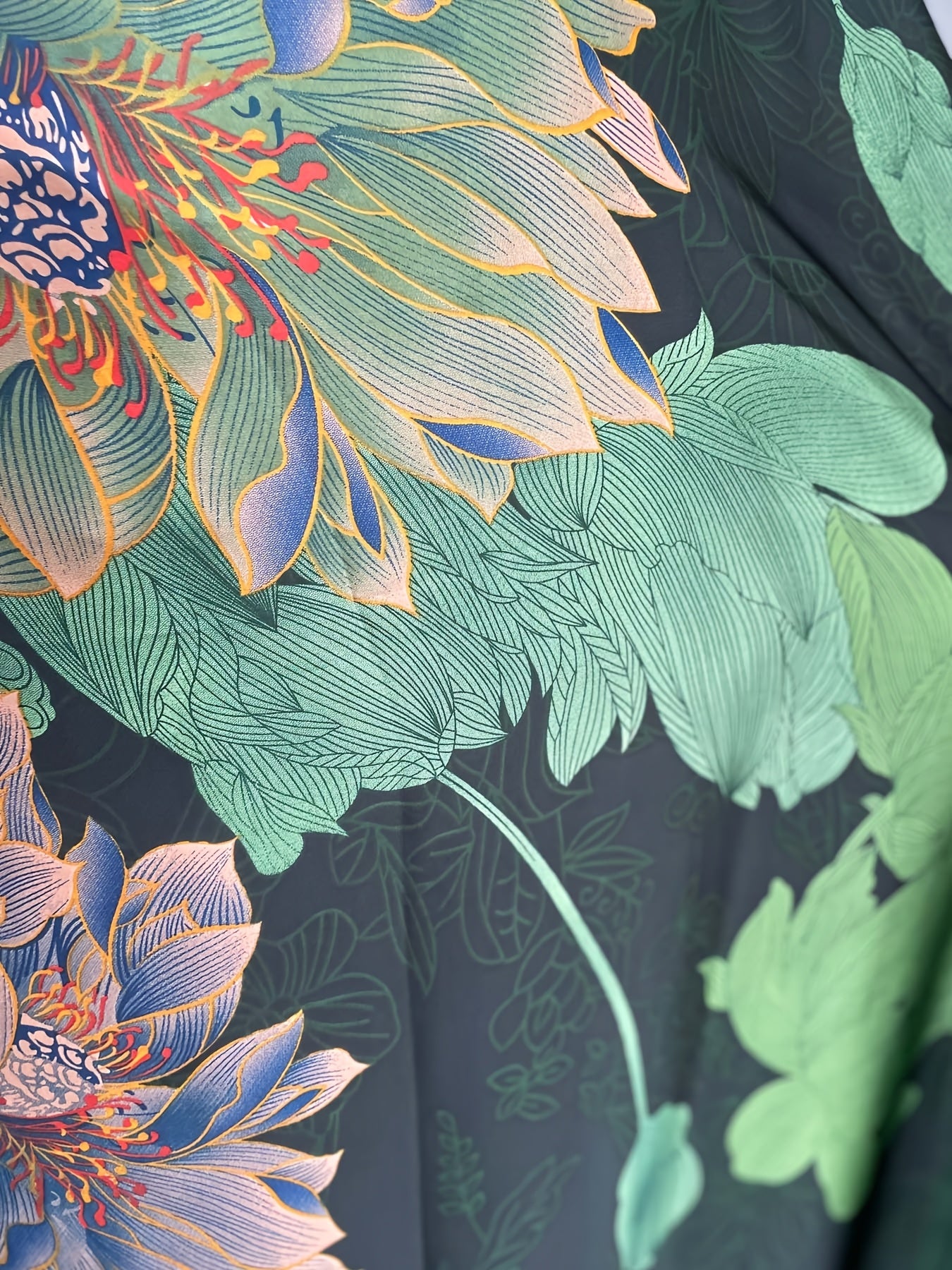 Women Plus Size Floral Tunic Dress with Scarf Polyester Crew Neck Long Fit
