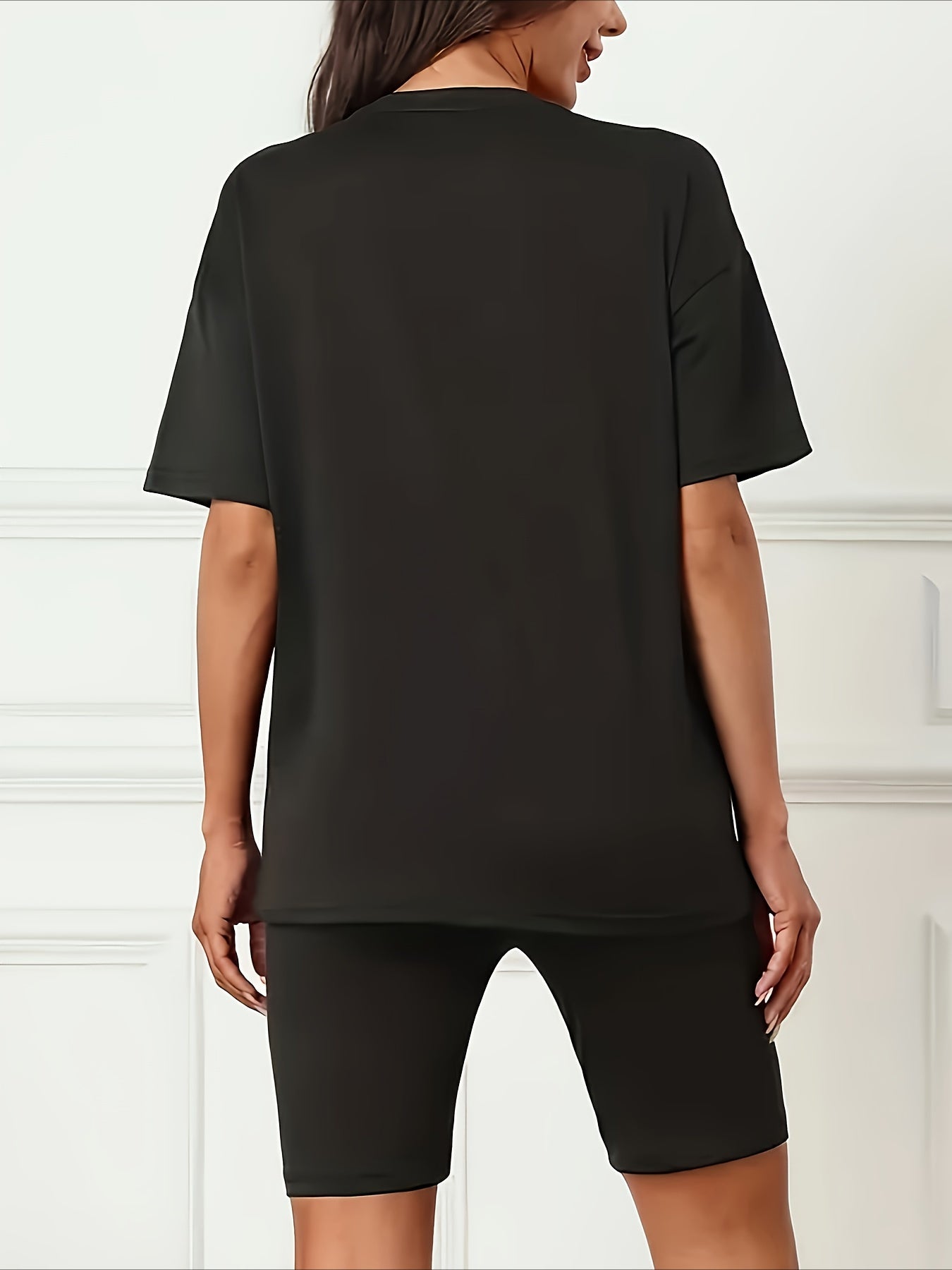 Women Plus Size Sportswear Set Short Sleeve Top and Shorts Stretchy Fabric